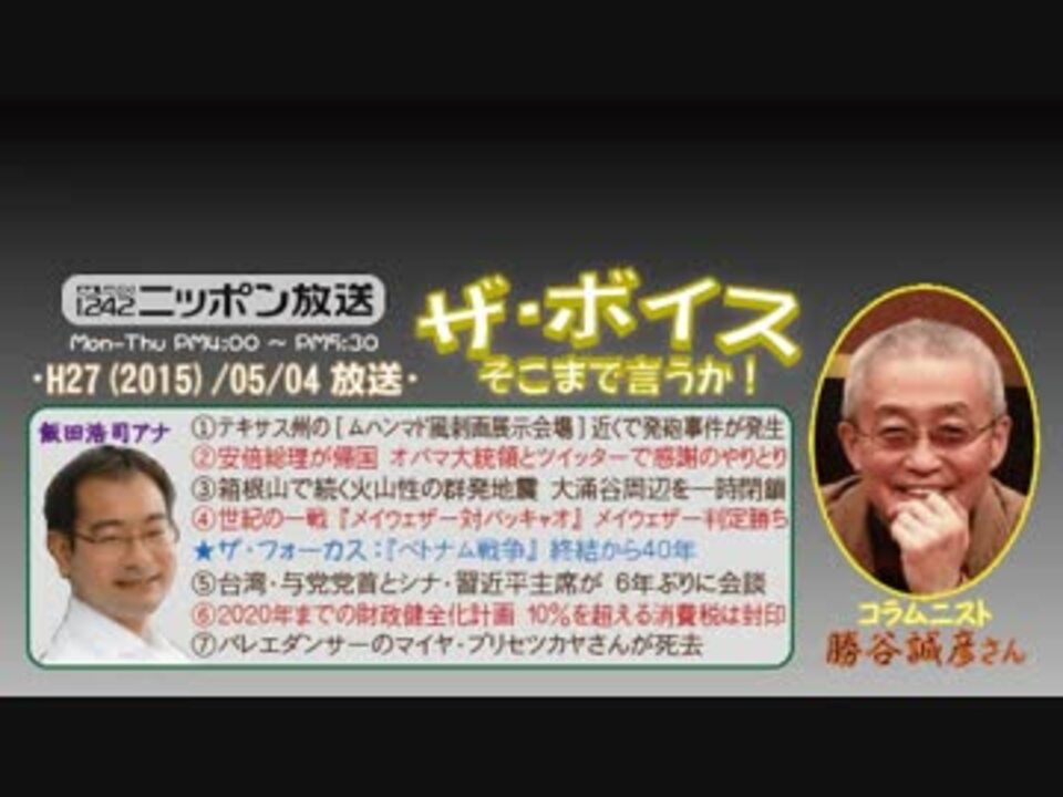 一昨日の日比谷公会堂のイベント【激論!ラジオパーク大決戦!】に参加された皆さん、お疲れ様でした!(^^<br />今回の冒頭では、もちろんこの話で盛り上がり、(私を含めた^^;)参加された方々の好意的な感想が多数取り上げられたのですが、そこで勝谷さんが釘を刺すように仰った、「もっと多様な論客が欲しかった。気持ちの良い(聴き心地のよい)言葉ばかり聞いてちゃダメだから(意訳」というのは、確かに私も、ちょっと心に引っかかっていたところでした。改めて肝に銘じておこうと思います!<br />とはいえ、よくある「他人の意見遮りまくりでギャーギャー喚く名ばかりの討論」も、それはそれで困るのですがw<br /><br />……え、レポですか? 善処いたします、はい(^^;<br />※街ステ飛ばし→ <a href="#" class="seekTime" data-seekTime="36:32" onclick="seekNicoPlayer('#36:32'); return false;">#36:32</a><br />□<a href="https://www.nicovideo.jp/mylist/36340069" target="_blank" rel="noopener">mylist/36340069</a>□<a href="https://www.nicovideo.jp/mylist/41644857" target="_blank" rel="noopener">mylist/41644857</a>