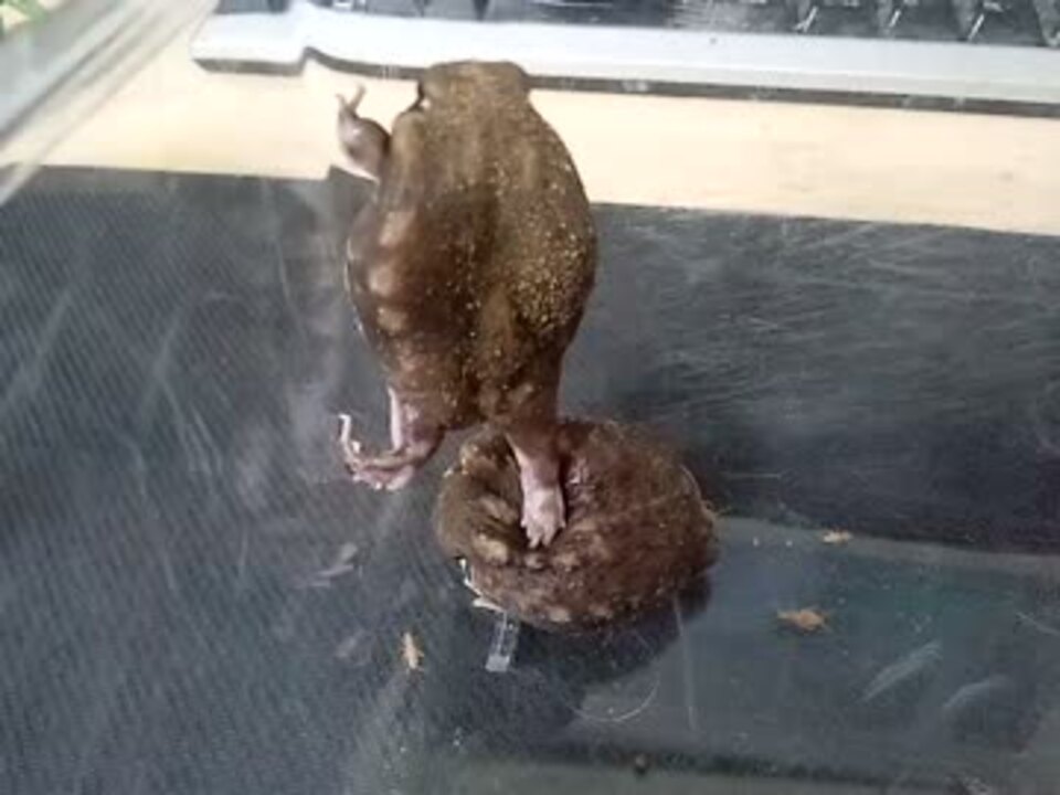 登ろうとするアメフクラガエル(塩次郎)下敷きになるアメフクラガエル(ゴマ乃助)<br />いつも掘り起こして餌用のケージに入れると動かないゴマ乃助に<br />近づいては上に乗ろうとする活発な塩次郎<br /> いつも見ている風景とは違ったので動画を撮って見ました。<br />画像など→ <a href="http://tenonv.tumblr.com/" target="_blank" rel="noopener nofollow">http://tenonv.tumblr.com/</a><br />BGMをアレにしたら淫なんとかになるのでやめました。<br />他のアメフクラガエルの動画【<a href="https://www.nicovideo.jp/mylist/56959657" target="_blank" rel="noopener">mylist/56959657</a>】