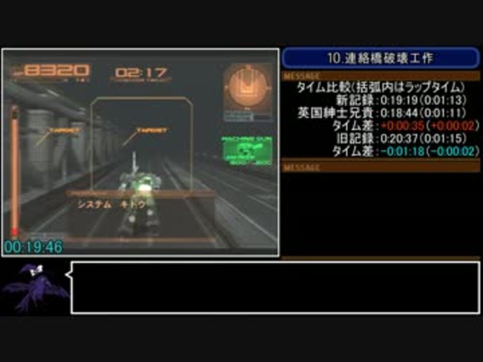 更新版なので初投稿です<br><br>チャートはこちら(最新版) <a href="https://note.com/hoksonckc/n/ne75227176a69" target="_blank" rel="noopener nofollow">https://note.com/hoksonckc/n/ne75227176a69</a><br><br>旧記録版(<a href="https://www.nicovideo.jp/watch/sm24991043" class="watch">sm24991043</a>)もオナシャス!<br><br>無修正版はこちら<br><a href="https://youtu.be/TsuKBKXUox4" target="_blank" rel="noopener nofollow">https://youtu.be/TsuKBKXUox4</a><br><br>少し古い記録ですが英国紳士兄貴の動画はこちら<br><a href="https://youtu.be/4KrvZ_eTijk" target="_blank" rel="noopener nofollow">https://youtu.be/4KrvZ_eTijk</a><br><br>PS2型番:SCPH-50000<br>レイヴン試験(1/35)~炉心破壊阻止(21/35)まで<br>Part2 <a href="https://www.nicovideo.jp/watch/sm26293511" class="watch">sm26293511</a><br><br>Part1集 <a href="https://www.nicovideo.jp/mylist/47020975" target="_blank" rel="noopener">mylist/47020975</a><br><br>05/16に行われた神戸MRMの大会動画も上がっているようです! <a href="https://www.nicovideo.jp/watch/sm26286649" class="watch">sm26286649</a>