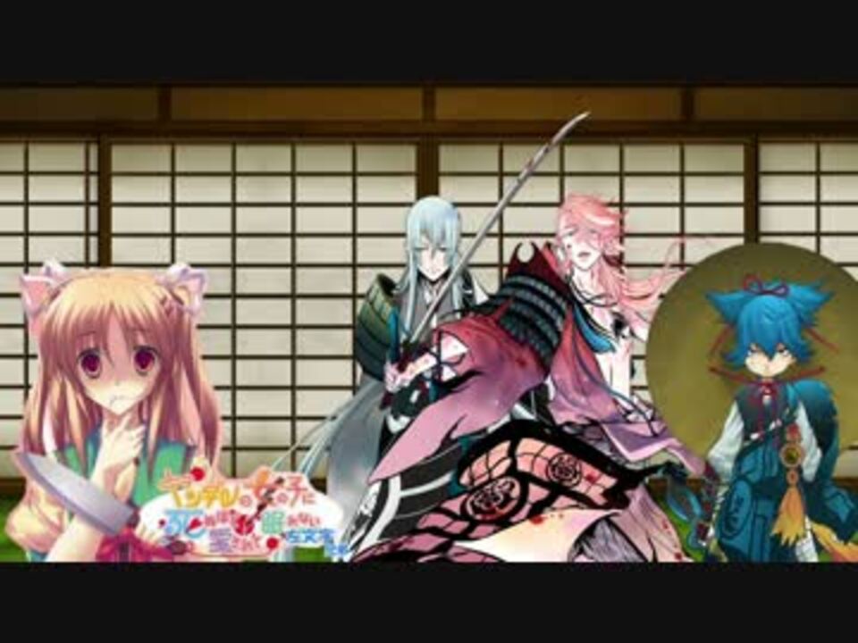 前編:<a href="https://www.nicovideo.jp/watch/sm26243510" class="watch">sm26243510</a><br />作ったもの:<a href="https://www.nicovideo.jp/mylist/55738708" target="_blank" rel="noopener">mylist/55738708</a><br /><br />~あらすじ~<br />手入れと称した監禁により、身動きが取れない状態に陥った左文字兄弟。<br />江雪左文字は妹との和睦交渉が上手くいかない事を愁い、<br />宗三左文字はまさに籠の鳥になってしまったこの状況を愁い、<br />小夜左文字は柿が食べたくなってきた。<br />はたして、左文字兄弟はヤンデレ妹の魔の手から逃れる事はできるのか!?<br />そして、新しく仲間になった籠の鳥は、左文字兄弟を救い出す事ができるのか……?<br />