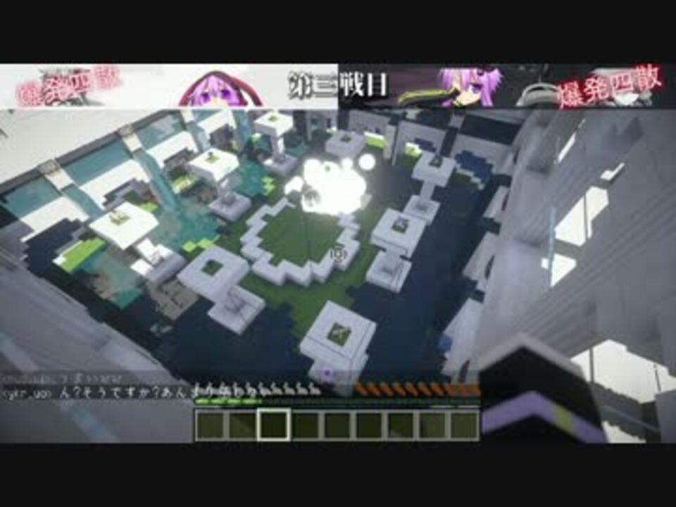 第6競技のボンバーゲームです。爆発物のプロの本領が発揮されるッ!<br />詳しい解説についてはこちらの解説動画を参照してください。(<a href="https://www.nicovideo.jp/watch/sm24632011" class="watch">sm24632011</a>)<br /><br />【選手ユーザーリンク】<br />キンブルさん<a href="https://www.nicovideo.jp/user/816072" target="_blank" rel="noopener">user/816072</a> 紅月蓮華さん<a href="https://www.nicovideo.jp/user/1851028" target="_blank" rel="noopener">user/1851028</a> Metoroさん<a href="https://www.nicovideo.jp/user/408466" target="_blank" rel="noopener">user/408466</a><br />TSUKASAさん<a href="https://www.nicovideo.jp/user/11140988" target="_blank" rel="noopener">user/11140988</a> ガガさん<a href="https://www.nicovideo.jp/user/1022347" target="_blank" rel="noopener">user/1022347</a> 縦巻ロールさん<a href="https://www.nicovideo.jp/user/13257666" target="_blank" rel="noopener">user/13257666</a><br />yasureさん<a href="https://www.nicovideo.jp/user/30276785" target="_blank" rel="noopener">user/30276785</a> そーやさん<a href="https://www.nicovideo.jp/user/20915738" target="_blank" rel="noopener">user/20915738</a> どるさん<a href="https://www.nicovideo.jp/user/5962583" target="_blank" rel="noopener">user/5962583</a><br />きゆみやまさん<a href="https://www.nicovideo.jp/user/33089425" target="_blank" rel="noopener">user/33089425</a> 効果inさん<a href="https://www.nicovideo.jp/user/15875630" target="_blank" rel="noopener">user/15875630</a> 結月独眼竜ゆかりさん<a href="https://www.nicovideo.jp/user/2370266" target="_blank" rel="noopener">user/2370266</a><br /><br />Metoroさん視点:<a href="https://www.nicovideo.jp/watch/sm24812853" class="watch">sm24812853</a><br /><br />youtube高画質版:<a href="https://youtu.be/Zj7qXQIDjSg" target="_blank" rel="noopener nofollow">https://youtu.be/Zj7qXQIDjSg</a><br /><br />前回:<a href="https://www.nicovideo.jp/watch/sm26095240" class="watch">sm26095240</a> 次回:<a href="https://www.nicovideo.jp/watch/sm26581619" class="watch">sm26581619</a> マイクラリスト:<a href="https://www.nicovideo.jp/mylist/42436169" target="_blank" rel="noopener">mylist/42436169</a>