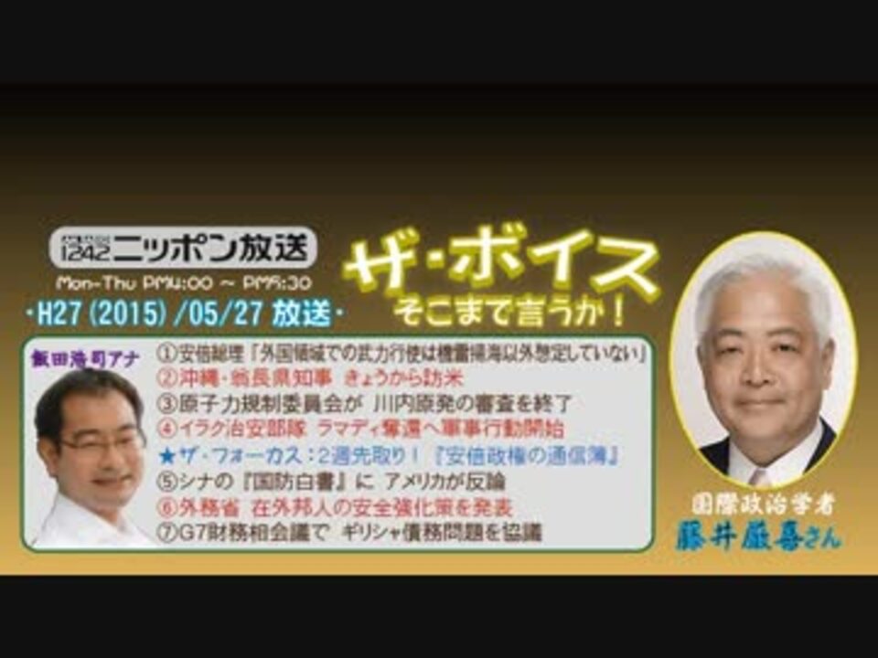 再来週は、2ヶ月ごとに恒例の特集週で、この番組では【徹底分析! 安倍政権の通信簿】なる企画をやることは、一昨日からの告知にてご承知のことかと思いますが、今回の藤井さんは、一足お先にその通信簿を発表されました。さぁ、その点数は甘口か辛口か……、ぜひ直にお確かめください!(^^<br /><br />ところで今回、久しぶりに「不適切な発言」があったようなのですが、はて、どこなんでしょーか?<br />やはり具体的に言ってくれないと分からないので、例えば……あくまでも例えばですよ、「先ほど、「○×は狂っている!」という発言がありました。「狂っている!」などと、本当に○×様にお詫びいたします」~の方がダメ押し、もとい誠意があると思うのですが(笑)<br />※街ステ飛ばし→<a href="#" class="seekTime" data-seekTime="36:50" onclick="seekNicoPlayer('#36:50'); return false;">#36:50</a><br />□<a href="https://www.nicovideo.jp/mylist/36340069" target="_blank" rel="noopener">mylist/36340069</a>□<a href="https://www.nicovideo.jp/mylist/41644857" target="_blank" rel="noopener">mylist/41644857</a>