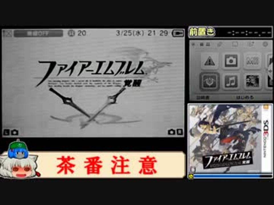 RTA 語録を交え TNPよく(tomo蔵、心のハイク)<br /><br />FE覚醒ルナクラの全員加入&生存RTAです。<br />計測点:キャラメイク後のセーブ完了後~ラスボス撃破後の選択肢入力<br />本体:ニンテンドー3DS(メタリックレッド) CTR-001(JPN)<br /><br />開始~5章クリアまで<br />例によって解説をゆっくり見る場合は一時停止推奨<br /><br />次 → <a href="https://www.nicovideo.jp/watch/sm26431940" class="watch">sm26431940</a><br />(今回は無編集版はナシです)<br /><br />チャート(再up) → <a href="http://www1.axfc.net/u/3501694?key=810" target="_blank" rel="noopener nofollow">http://www1.axfc.net/u/3501694?key=810</a><br />前回(非生存RTA) → <a href="https://www.nicovideo.jp/watch/sm25656417" class="watch">sm25656417</a><br />覚醒RTAマイリス → <a href="https://www.nicovideo.jp/mylist/47136382" target="_blank" rel="noopener">mylist/47136382</a><br /><br />ユニット紹介 → <a href="https://www.nicovideo.jp/watch/sm25656376" class="watch">sm25656376</a><br />公式BACKGROUND → <a href="http://www.nintendo.co.jp/fe/kakusei_bk/" target="_blank" rel="noopener nofollow">http://www.nintendo.co.jp/fe/kakusei_bk/</a><br /><br /><br />広告ありがとなすび。詳細は字数の都合で投コメにて<br />