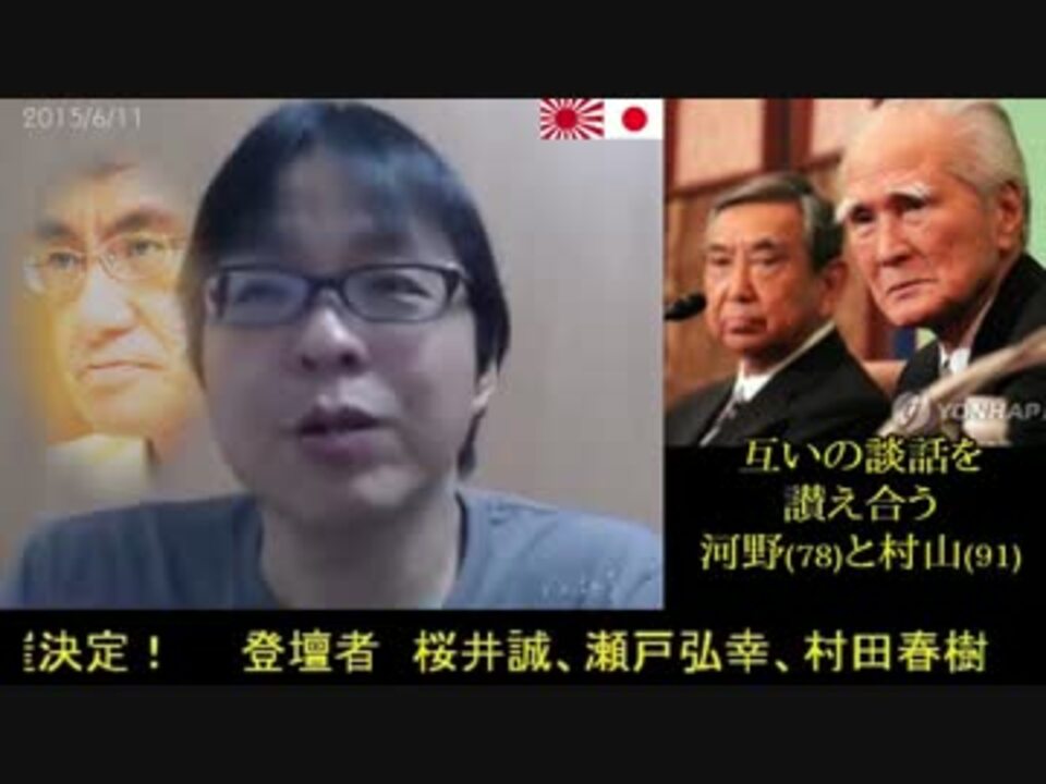 桜井誠の『Straight☆Talk』(2015/6/11)より。◆日米の教育比較 ◆自省なき老害二人…村山富市との対談で『白馬事件』を持ち出してまで己を正当化、日本を貶める河野洋平。河野太郎よ、親父をなんとかしろ!(激怒) ◆6月22日(月)【日韓断交を求める国民大集会in日比谷公会堂】→<a href="http://qq5qq.info/lIBc" target="_blank" rel="noopener nofollow">http://qq5qq.info/lIBc</a> ◆【行動する保守運動のカレンダー全国版】→<a href="http://www.koudouhosyu.info/" target="_blank" rel="noopener nofollow">http://www.koudouhosyu.info/</a> ◆【行動する保守運動のコミュ】→<a href="http://com.nicovideo.jp/community/co5954" target="_blank" rel="noopener nofollow">http://com.nicovideo.jp/community/co5954</a> ◆【在日特権を許さない市民の会・本部コミュ】→<a href="http://com.nicovideo.jp/community/co1977469" target="_blank" rel="noopener nofollow">http://com.nicovideo.jp/community/co1977469</a> ◆YouTubeに高画質を投稿しました→<a href="https://www.youtube.com/watch?v=N4_4t3HGTr4" target="_blank" rel="noopener nofollow">https://www.youtube.com/watch?v=N4_4t3HGTr4</a> 広告ありがとうございます。