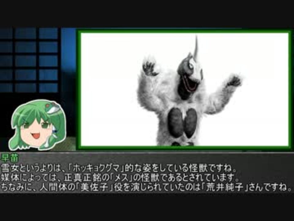 ウルトラマンX(エックス)が楽しみすぎる・・・<br /><br />第四十二回目は帰ってきたウルトラマンより、<br />「冷凍怪人ブラック星人」&「雪女怪獣スノーゴン」をご紹介。<br />初めてウルトラマンジャックバラバラ事件を見た時は、目が点になった記憶が・・・w<br /><br /><a href="https://www.nicovideo.jp/watch/sm26426975" class="watch">sm26426975</a>←前 次→<a href="https://www.nicovideo.jp/watch/sm26732867" class="watch">sm26732867</a><br />マイリスト→<a href="https://www.nicovideo.jp/mylist/36883720" target="_blank" rel="noopener">mylist/36883720</a> 動画用イラスト→<a href="https://seiga.nicovideo.jp/clip/880468" target="_blank" rel="noopener">clip/880468</a><br /><br />◆その他企画◆<br />ゆっくり霊夢とやる夫が学ぶ ウルトラ怪獣大百科(SS版)→<a href="https://ch.nicovideo.jp/article/ar214243" target="_blank" rel="noopener">ar214243</a><br />昆虫やゴジラなど他のシリーズは、このマイリスからどうぞ→<a href="https://www.nicovideo.jp/mylist/39889181" target="_blank" rel="noopener">mylist/39889181</a><br />生放送とかをやっている怪獣コミュニティ→co1805608