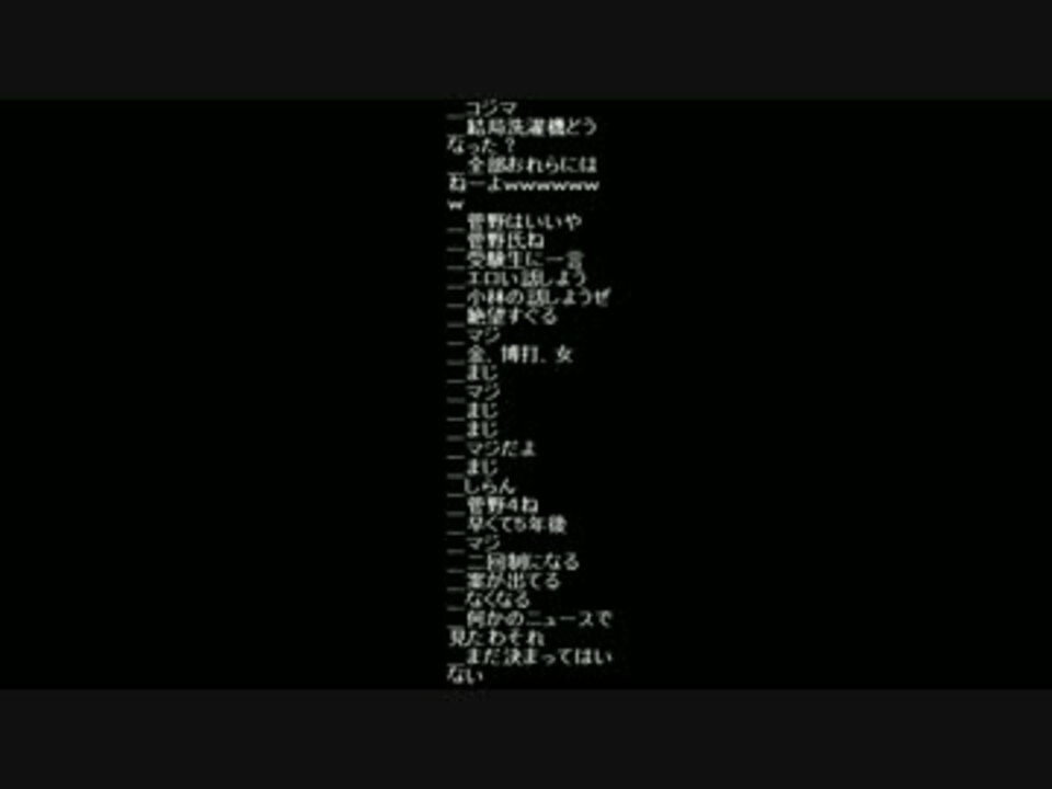 【話題】洗濯機が回らない<a href="#" class="seekTime" data-seekTime="0:00" onclick="seekNicoPlayer('#0:00'); return false;">#0:00</a> 最初から洗濯やり直す<a href="#" class="seekTime" data-seekTime="2:30" onclick="seekNicoPlayer('#2:30'); return false;">#2:30</a> センター試験なくなる<a href="#" class="seekTime" data-seekTime="5:30" onclick="seekNicoPlayer('#5:30'); return false;">#5:30</a><br /> 人気生主になるには?<a href="#" class="seekTime" data-seekTime="7:50" onclick="seekNicoPlayer('#7:50'); return false;">#7:50</a> イキってるやつ殺したい<a href="#" class="seekTime" data-seekTime="10:20" onclick="seekNicoPlayer('#10:20'); return false;">#10:20</a><br /> 洗濯機が動かない<a href="#" class="seekTime" data-seekTime="13:20" onclick="seekNicoPlayer('#13:20'); return false;">#13:20</a> ドレインパンチで動かす<a href="#" class="seekTime" data-seekTime="15:30" onclick="seekNicoPlayer('#15:30'); return false;">#15:30</a> 掲示板みる<a href="#" class="seekTime" data-seekTime="18:00" onclick="seekNicoPlayer('#18:00'); return false;">#18:00</a><br /> ファッション、ZARA<a href="#" class="seekTime" data-seekTime="23:20" onclick="seekNicoPlayer('#23:20'); return false;">#23:20</a><br />--------------<br />1→<a href="https://www.nicovideo.jp/watch/sm26655693" class="watch">sm26655693</a> 2→<a href="https://www.nicovideo.jp/watch/sm26655722" class="watch">sm26655722</a> 3→<a href="https://www.nicovideo.jp/watch/sm26655747" class="watch">sm26655747</a> 4→<a href="https://www.nicovideo.jp/watch/sm26655771" class="watch">sm26655771</a> 5→<a href="https://www.nicovideo.jp/watch/sm26655802" class="watch">sm26655802</a><br />6→<a href="https://www.nicovideo.jp/watch/sm26655820" class="watch">sm26655820</a>