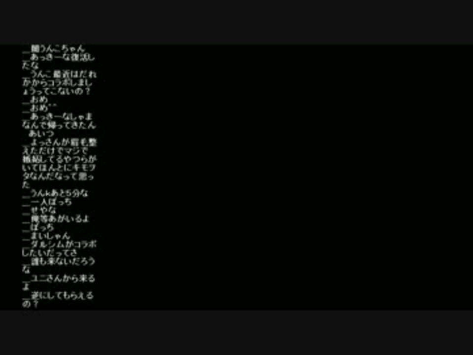 【話題】チャットやめてLINEにしよう<a href="#" class="seekTime" data-seekTime="5:10" onclick="seekNicoPlayer('#5:10'); return false;">#5:10</a> 生主は視聴者に気を使いすぎ<a href="#" class="seekTime" data-seekTime="6:40" onclick="seekNicoPlayer('#6:40'); return false;">#6:40</a><br /> 前科のある生主<a href="#" class="seekTime" data-seekTime="12:20" onclick="seekNicoPlayer('#12:20'); return false;">#12:20</a> コレコレの前科など<a href="#" class="seekTime" data-seekTime="13:40" onclick="seekNicoPlayer('#13:40'); return false;">#13:40</a> ドラクエ5のネタバレ<a href="#" class="seekTime" data-seekTime="18:50" onclick="seekNicoPlayer('#18:50'); return false;">#18:50</a><br /> 金バエ、よっさん、NERの喧嘩<a href="#" class="seekTime" data-seekTime="19:20" onclick="seekNicoPlayer('#19:20'); return false;">#19:20</a> まったんの歌をきく<a href="#" class="seekTime" data-seekTime="26:00" onclick="seekNicoPlayer('#26:00'); return false;">#26:00</a><br />--------------<br />1→<a href="https://www.nicovideo.jp/watch/sm26655693" class="watch">sm26655693</a> 2→<a href="https://www.nicovideo.jp/watch/sm26655722" class="watch">sm26655722</a> 3→<a href="https://www.nicovideo.jp/watch/sm26655747" class="watch">sm26655747</a> 4→<a href="https://www.nicovideo.jp/watch/sm26655771" class="watch">sm26655771</a> 5→<a href="https://www.nicovideo.jp/watch/sm26655802" class="watch">sm26655802</a><br />6→<a href="https://www.nicovideo.jp/watch/sm26655820" class="watch">sm26655820</a> まったんの歌→<a href="https://www.nicovideo.jp/watch/nm12377724" class="watch">nm12377724</a>