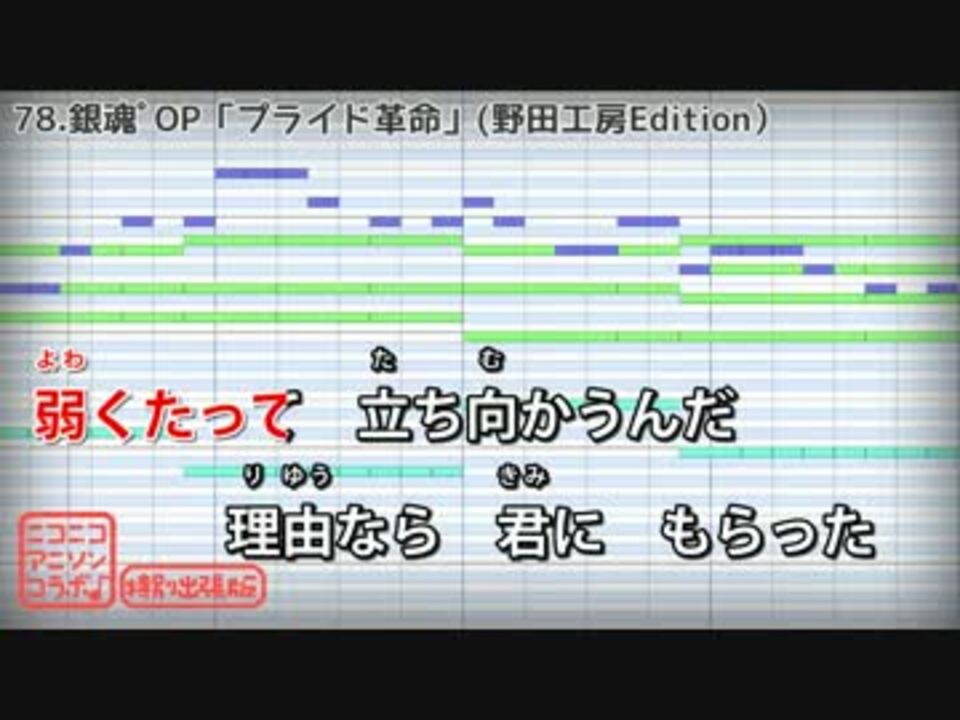 <font color="red" size="5"><b>★ガイドメロ無カラオケ/MIDI/コード配布中!<br /><a href="http://bit.ly/1VDZreA" target="_blank" rel="noopener nofollow">http://bit.ly/1VDZreA</a></font></b><br /><br /><b>◆原曲:</b>プライド革命(CHiCO with HoneyWorks)<br /><b>◆企画・打ち込み:</b>野田工房P <a href="https://www.nicovideo.jp/mylist/15625161" target="_blank" rel="noopener">mylist/15625161</a>(@nodakoubou)<br /><br /><b>■アニソンOP/EDカラオケ(打ち込み版)</b><br />74.ケイオスドラゴンOP <a href="https://www.nicovideo.jp/watch/sm26632737" class="watch">sm26632737</a><br />75.がっこうぐらし!OP <a href="https://www.nicovideo.jp/watch/sm26651852" class="watch">sm26651852</a><br />76.うしおととらOP <a href="https://www.nicovideo.jp/watch/sm26653845" class="watch">sm26653845</a><br />77.GATE OP <a href="https://www.nicovideo.jp/watch/sm26655877" class="watch">sm26655877</a><br />78.銀魂゚OP <a href="https://www.nicovideo.jp/watch/sm26658423" class="watch">sm26658423</a><br />79.乱歩奇譚OP <a href="https://www.nicovideo.jp/watch/sm26682744" class="watch">sm26682744</a><br />80.デュラララ!!×2転OP <a href="https://www.nicovideo.jp/watch/sm26687258" class="watch">sm26687258</a><br />81.干物妹!うまるちゃん OP <a href="https://www.nicovideo.jp/watch/sm26689965" class="watch">sm26689965</a><br />83.監獄学園OP <a href="https://www.nicovideo.jp/watch/sm26748995" class="watch">sm26748995</a><br />84.Charlotte OP <a href="https://www.nicovideo.jp/watch/sm26752940" class="watch">sm26752940</a><br />85.WORKING OP <a href="https://www.nicovideo.jp/watch/sm26788267" class="watch">sm26788267</a><br />86.シンフォギアOP <a href="https://www.nicovideo.jp/watch/sm26891085" class="watch">sm26891085</a><br />87.下セカED <a href="https://www.nicovideo.jp/watch/sm26894714" class="watch">sm26894714</a><br /><br /><font color="red" size="5"><b>★アニソンカラオケ一覧はこちら<br /><a href="http://bit.ly/1Gw9EgX" target="_blank" rel="noopener nofollow">http://bit.ly/1Gw9EgX</a></b></font>