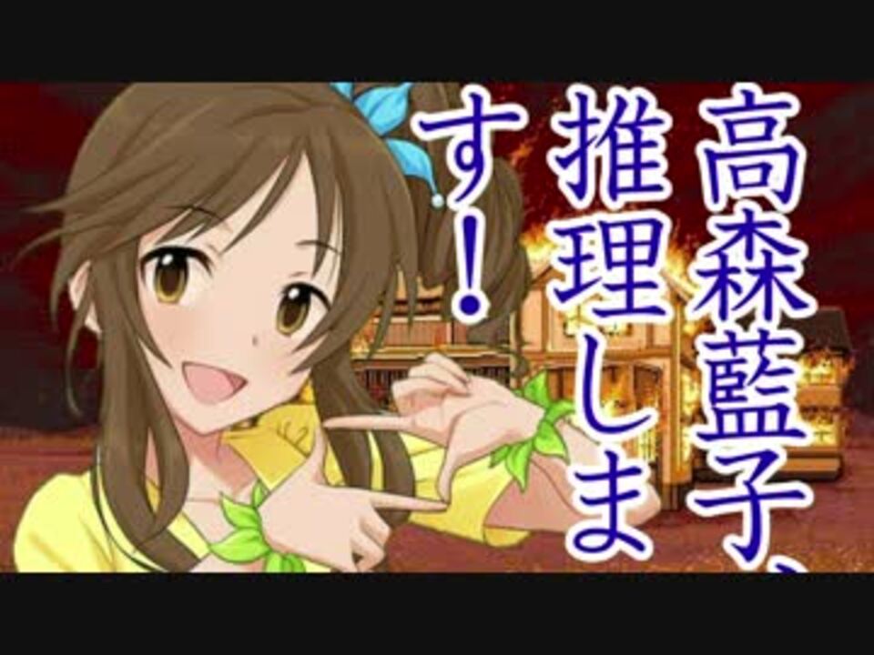 「藍ます!」34話目! 前編はこちら→<a href="https://www.nicovideo.jp/watch/sm26782569" class="watch">sm26782569</a><br /><br />あんまりいないとは思いますが、もしガチのミステリーを期待した人がいたら、ごめんなさい……この有様です。鑑識が鑑識してないのはご愛敬ということで……。<br />アニメのほうは、藍子にもぽちぽちと出番があって一安心です。1回くらいOPのダンスに交ざっちゃってもバレないかと。 (Tookato)<br />【追記】<br />宣伝ありがとうございます!x3<br /><br />#1 「高森藍子、働きます!」<a href="https://www.nicovideo.jp/watch/sm19562424" class="watch">sm19562424</a><br />#33 「高森藍子、推理します! 前編」<a href="https://www.nicovideo.jp/watch/sm26782569" class="watch">sm26782569</a><br />#35 「高森藍子、脱がされます!」<a href="https://www.nicovideo.jp/watch/sm27030082" class="watch">sm27030082</a><br /><a href="https://www.nicovideo.jp/mylist/34971870" target="_blank" rel="noopener">mylist/34971870</a><br /><br />素材は主に以下の方々からお借りしました。ありがとうございます!<br /> 晴嵐改氏、シロP、つくーるP、よんごっぱ氏