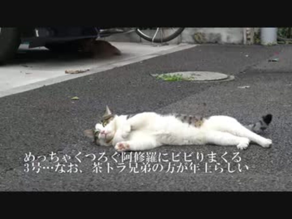 猫の抗争が続く公園付近で睨み合う二匹の猫。そこに頭が子猫の茶トラ兄弟が相変わらずのコントっぷりを見せていました。<br />相関図 <a href="https://seiga.nicovideo.jp/seiga/im4565279" target="_blank" rel="noopener">im4565279</a><br />ブログ <a href="http://blog.livedoor.jp/nekokamasu/" target="_blank" rel="noopener nofollow">http://blog.livedoor.jp/nekokamasu/</a><br />【2014年当アカウントベスト動画】<a href="https://www.nicovideo.jp/mylist/47649306" target="_blank" rel="noopener">mylist/47649306</a><br />【宇宙猫兄弟】<a href="https://www.nicovideo.jp/mylist/50427722" target="_blank" rel="noopener">mylist/50427722</a><br />【野良猫観察(2015年)】<a href="https://www.nicovideo.jp/mylist/47649301" target="_blank" rel="noopener">mylist/47649301</a><br />【保護猫の観察】<a href="https://www.nicovideo.jp/mylist/45329168" target="_blank" rel="noopener">mylist/45329168</a><br />【猫の子育て観察】<a href="https://www.nicovideo.jp/mylist/45828555" target="_blank" rel="noopener">mylist/45828555</a><br />【人懐こい野良猫】<a href="https://www.nicovideo.jp/mylist/41859707" target="_blank" rel="noopener">mylist/41859707</a><br />【公園猫戦争】<a href="https://www.nicovideo.jp/mylist/44561791" target="_blank" rel="noopener">mylist/44561791</a><br />【猫のω】<a href="https://www.nicovideo.jp/mylist/44575723" target="_blank" rel="noopener">mylist/44575723</a><br />【キジトラ地獄】<a href="https://www.nicovideo.jp/mylist/44823472" target="_blank" rel="noopener">mylist/44823472</a><br />【野良猫観察(2014年)】<a href="https://www.nicovideo.jp/mylist/44575764" target="_blank" rel="noopener">mylist/44575764</a><br />【野良猫観察(2013年)】<a href="https://www.nicovideo.jp/mylist/37025475" target="_blank" rel="noopener">mylist/37025475</a>