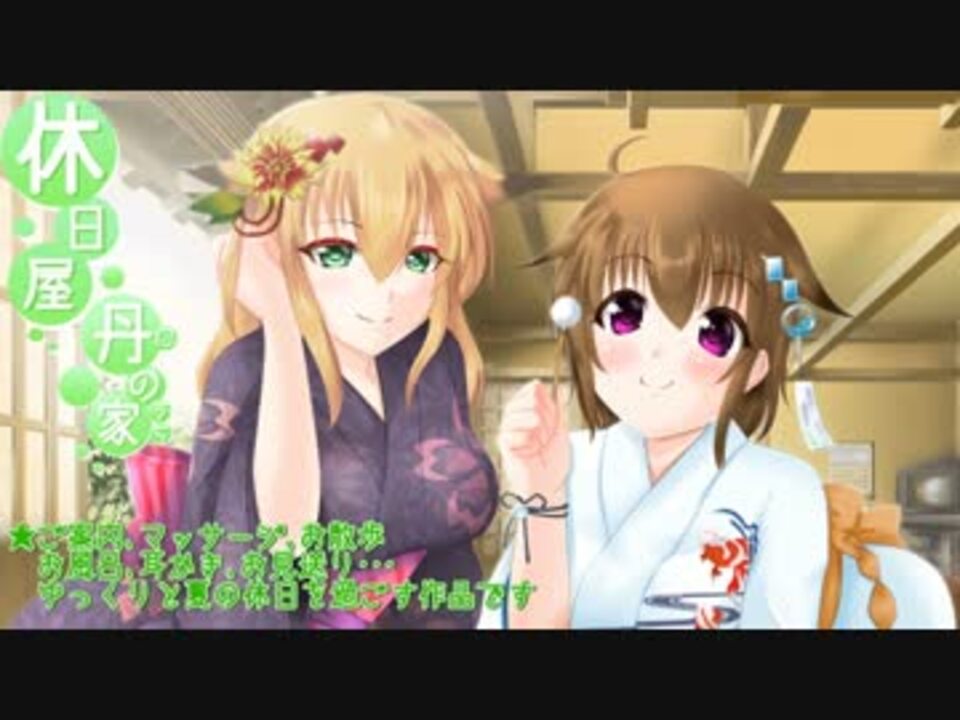 春M3にて製作しました休日屋の2作目になります。是非イヤホン、ヘッドホンをしてお聞き下さい<br /><br />休日のお誘い<br /><br />都会の喧騒を忘れてあなたの知らない場所でお休みを一緒に過ごしませんか?<br />ご来店、心よりお待ちしております 休日屋<br /><br />DL版の販売はこちらでされております。<br /><br /><a href="http://www.dlsite.com/home/work/=/product_id/RJ159115.html" target="_blank" rel="noopener nofollow">http://www.dlsite.com/home/work/=/product_id/RJ159115.html</a><br /><br />★ご案内から、マッサージ、お散歩、お風呂、耳かき、お見送りに加えて<br /> 今回は夏らしい御持て成しも・・・?<br /> また、「声付き耳かき音を作ってみた⑳」をおまけファイル「ある日の休日屋」として同梱しております<br /><br /><br />声:浅見ゆい様 <a href="http://butterfly.holy.jp/" target="_blank" rel="noopener nofollow">http://butterfly.holy.jp/</a><br /> 藤堂れんげ様 <a href="http://renge.michikusa.jp/" target="_blank" rel="noopener nofollow">http://renge.michikusa.jp/</a><br />