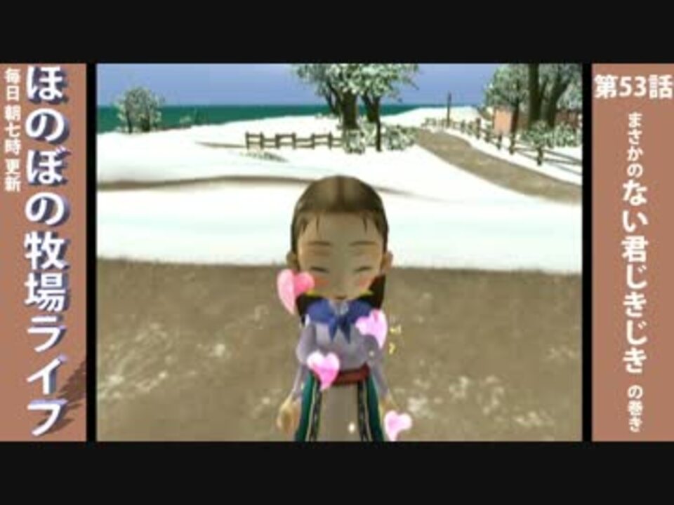 毎日朝七時更新 ほのぼの牧場ライフ 第53話<br />「まさかのない君じきじき」の巻き<br /><br />ただでさえストックがないのに<br />前前回のおかげで更にカツカツになってきた!<br /><br />が、なぜかこれを打つ私の顔は笑顔<br /><br /><a href="https://www.nicovideo.jp/watch/sm26950315" class="watch">sm26950315</a>←第52話 第54話→<a href="https://www.nicovideo.jp/watch/sm26951737" class="watch">sm26951737</a> 朝7時投稿<br />シリーズマイリスト(<a href="https://www.nicovideo.jp/mylist/50719564" target="_blank" rel="noopener">mylist/50719564</a>)<br /><br />その他のわいわい動画(<a href="https://www.nicovideo.jp/mylist/12317813" target="_blank" rel="noopener">mylist/12317813</a>)<br /><br />ブログ:<a href="http://waiwaidadasuberi.blog47.fc2.com/" target="_blank" rel="noopener nofollow">http://waiwaidadasuberi.blog47.fc2.com/</a><br />Twitter:<a href="https://twitter.com/ABCDYY" target="_blank" rel="noopener nofollow">https://twitter.com/ABCDYY</a>