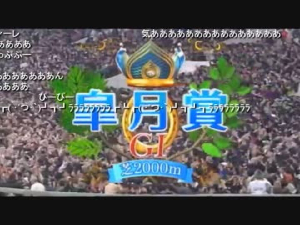2014/04/20(日) 15:27開場 15:30開演 放送ID:<a href="https://live.nicovideo.jp/watch/lv176576540" target="_blank" rel="noopener">lv176576540</a><br /><br />目標金額36万(名古屋ドームで貸切配信に使う頭金)<br />皐月賞単勝勝負配信<br /><br />前日枠→<a href="https://www.nicovideo.jp/watch/sm23364036" class="watch">sm23364036</a> (競馬配信決定までの流れ)<br />翌日枠→<a href="https://www.nicovideo.jp/watch/sm27525905" class="watch">sm27525905</a> (ギャル男写真晒し)<br />配信まとめ→<a href="https://www.nicovideo.jp/mylist/54154548" target="_blank" rel="noopener">mylist/54154548</a><br /><br />※コメントファイルを発掘したので投稿。<br />コメントで競馬実況が行われていたので映像を合わせてみました。映像はレース部分のみです。<br />ワンアンドオンリーの馬順は1番です。<br /> ファンファーレ <a href="#" class="seekTime" data-seekTime="13:08" onclick="seekNicoPlayer('#13:08'); return false;">#13:08</a> / レース開始 <a href="#" class="seekTime" data-seekTime="14:38" onclick="seekNicoPlayer('#14:38'); return false;">#14:38</a> / レース終了 <a href="#" class="seekTime" data-seekTime="16:40" onclick="seekNicoPlayer('#16:40'); return false;">#16:40</a><br /><br />第74回皐月賞(G1) <a href="http://db.netkeiba.com/race/201406030811/" target="_blank" rel="noopener nofollow">http://db.netkeiba.com/race/201406030811/</a><br />ワンアンドオンリー4着