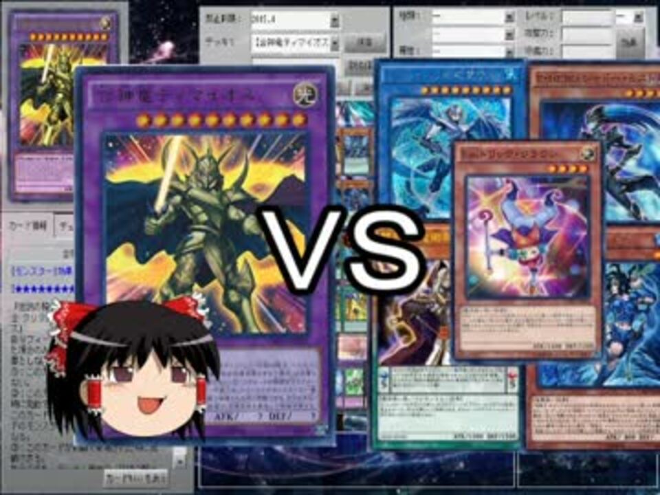 よっちーです。今回は要望にあった合神竜ティマイオスでやっていくよ。<br />ガチデッキとかも更に強化して凶悪にしときました。<br />最近投稿ペースが遅く、ドルベ(無能)ですいません。最低でも月1で投稿するつもりなので、待っててもらえていれば幸いです。<br /><br />前回の→<a href="https://www.nicovideo.jp/watch/sm26835090" class="watch">sm26835090</a> 次→<a href="https://www.nicovideo.jp/watch/sm27287482" class="watch">sm27287482</a><br />企画物まとめ→<a href="https://www.nicovideo.jp/mylist/49141961" target="_blank" rel="noopener">mylist/49141961</a><br />遊戯王動画集→<a href="https://www.nicovideo.jp/mylist/45562741" target="_blank" rel="noopener">mylist/45562741</a><br /><br />コミュニティ→co2730278<br />Twitter→<a href="https://twitter.com/No_25252" target="_blank" rel="noopener nofollow">https://twitter.com/No_25252</a><br /><br />最後言葉が暴力的ですが、あくまでも演出の都合のためで本心ではありません(*´ω`*)<br />遊戯王がある限り一生KONAMIの奴隷であることを誓いますよ⊂(^ω^)⊃