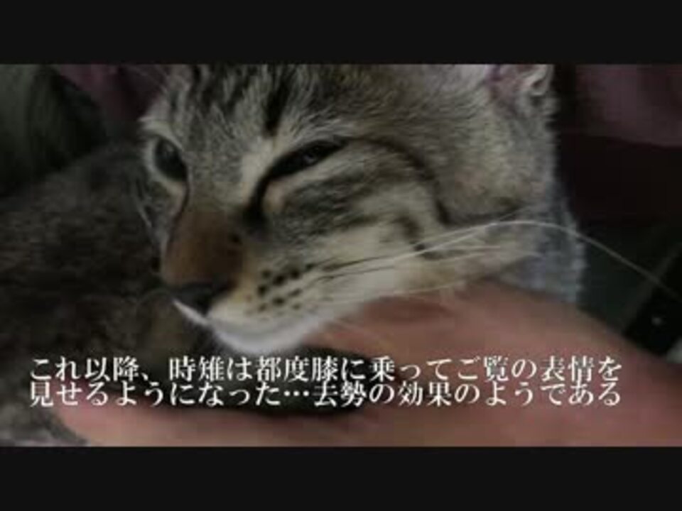 保護猫2号の時雉が旅立ちから帰宅しました。<br />ブログ <a href="http://blog.livedoor.jp/nekokamasu/" target="_blank" rel="noopener nofollow">http://blog.livedoor.jp/nekokamasu/</a><br />【2014年当アカウントベスト動画】<a href="https://www.nicovideo.jp/mylist/47649306" target="_blank" rel="noopener">mylist/47649306</a><br />【宇宙猫兄弟】<a href="https://www.nicovideo.jp/mylist/50427722" target="_blank" rel="noopener">mylist/50427722</a><br />【野良猫観察(2015年)】<a href="https://www.nicovideo.jp/mylist/47649301" target="_blank" rel="noopener">mylist/47649301</a><br />【保護猫の観察】<a href="https://www.nicovideo.jp/mylist/45329168" target="_blank" rel="noopener">mylist/45329168</a><br />【猫の子育て観察】<a href="https://www.nicovideo.jp/mylist/45828555" target="_blank" rel="noopener">mylist/45828555</a><br />【人懐こい野良猫】<a href="https://www.nicovideo.jp/mylist/41859707" target="_blank" rel="noopener">mylist/41859707</a><br />【公園猫戦争】<a href="https://www.nicovideo.jp/mylist/44561791" target="_blank" rel="noopener">mylist/44561791</a><br />【猫のω】<a href="https://www.nicovideo.jp/mylist/44575723" target="_blank" rel="noopener">mylist/44575723</a><br />【キジトラ地獄】<a href="https://www.nicovideo.jp/mylist/44823472" target="_blank" rel="noopener">mylist/44823472</a><br />【野良猫観察(2014年)】<a href="https://www.nicovideo.jp/mylist/44575764" target="_blank" rel="noopener">mylist/44575764</a><br />【野良猫観察(2013年)】<a href="https://www.nicovideo.jp/mylist/37025475" target="_blank" rel="noopener">mylist/37025475</a>