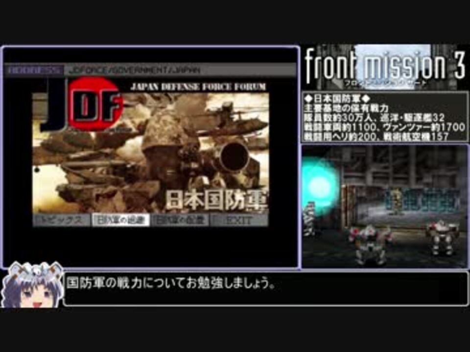 JDFです<br />怪獣王に負ける要素はありません<br /><br />FRONTMISSION3:PSアーカイブス版ねっとりプレイ<br />参考企業情報等:FM天網<br /><br />SUJ兄貴,MLPN兄貴,RLHL兄貴,KE兄貴,EKSTRMNTU兄貴,MGTNCOIN兄貴<br />宣伝アリシャス!<br /><br />その3<a href="https://www.nicovideo.jp/watch/sm27191748" class="watch">sm27191748</a> その5<a href="https://www.nicovideo.jp/watch/sm27207316" class="watch">sm27207316</a><br />FM3シリーズ <a href="https://www.nicovideo.jp/mylist/53164228" target="_blank" rel="noopener">mylist/53164228</a><br />投稿動画パート1<a href="https://www.nicovideo.jp/mylist/41918729" target="_blank" rel="noopener">mylist/41918729</a><br />作った動画全部 <a href="https://www.nicovideo.jp/mylist/42963985" target="_blank" rel="noopener">mylist/42963985</a><br />