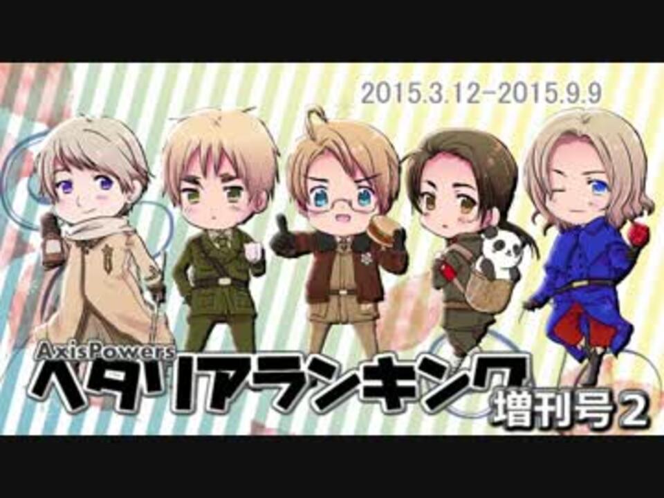 =ワ=৩ 増刊号だよ<br /><br />◆2015年3月12日~2015年9月9日に投稿された動画を対象としたランキングです。<br />◇タグに「AxisPowersヘタリア」が登録されている動画です。<br />◆AxisPowersヘタリアランキング <a href="https://www.nicovideo.jp/mylist/45818119" target="_blank" rel="noopener">mylist/45818119</a><br />◇ランキング紹介動画 ブロマガ→ <a href="http://ch.nicovideo.jp/mmd_ranking/blomaga/ar889487" target="_blank" rel="noopener nofollow">http://ch.nicovideo.jp/mmd_ranking/blomaga/ar889487</a><br />◆OP・ED使用曲 → <a href="https://www.nicovideo.jp/mylist/49568154" target="_blank" rel="noopener">mylist/49568154</a><br /><br />※sae様抹茶様mitan様にゃも様かやちょ様あさひ様モフ様はるの様☆彡様ゆき様いがらし様宮之助様kjrtb様、広告ありがとうございます!<br /><br />※転載&スクショ禁止 / 禁止转载&禁止截图 / Do Not Re-upload. Do not screenshot & screen capture.