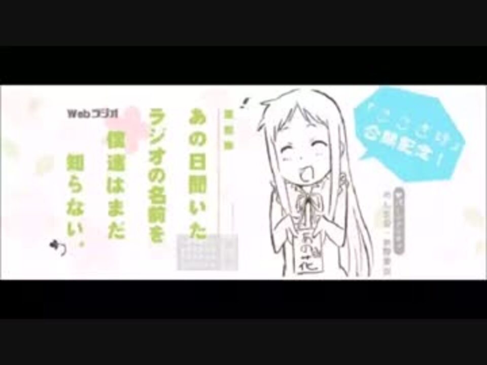 本垢でうpできなくなってしまったので来週から別垢でうp予定<br />別垢→<a href="https://www.nicovideo.jp/user/52290234" target="_blank" rel="noopener">user/52290234</a><br />あの花スタッフによる完全新作映画「心が叫びたがってるんだ。」の公開を記念して「あの花ラジオ」が復活!<br /><br />めんま役:茅野愛衣さんが今夏も盛り上がりを見せる「あの花」情報を伝えるとともに、<br /><br />「ここさけ」からキャストやスタッフを招いて作品の魅力をいっぱいご紹介します!<br /><br />パーソナリティ:めんま(本間芽衣子)役:茅野愛衣<br />ゲスト:内山昂輝(「心が叫びたがってるんだ。」坂上拓実役)<br />裏ラジオ→<a href="https://www.nicovideo.jp/watch/sm26789740" class="watch">sm26789740</a><br />公式:<a href="http://www.anohana.jp/radio/" target="_blank" rel="noopener nofollow">http://www.anohana.jp/radio/</a><br />次→<a href="https://www.nicovideo.jp/watch/sm27496777" class="watch">sm27496777</a><br />まとめ→<a href="https://www.nicovideo.jp/mylist/50953171" target="_blank" rel="noopener">mylist/50953171</a><br />上げた動画→<a href="https://www.nicovideo.jp/mylist/24839810" target="_blank" rel="noopener">mylist/24839810</a>