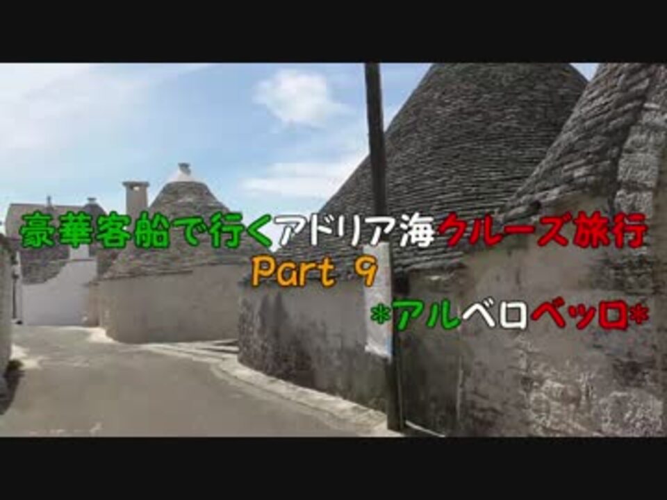 コメントで気が付きましたがサントリーニ島はギリシャでした!失礼しました!<br /><br />トゥルッロは単数、トゥルッリは複数です。<br /><br />なるべく揺れないようにと窓に手をつけて撮影していたから<br />手の油で車窓動画がぼんやりー。<br />過去に戻って思い切り拭きたい。<br /><br />前←<a href="https://www.nicovideo.jp/watch/sm27205267" class="watch">sm27205267</a> 次→#<a href="https://www.nicovideo.jp/watch/sm27676853" class="watch">sm27676853</a><br /><br />◆Part1 <a href="https://www.nicovideo.jp/watch/sm26579410" class="watch">sm26579410</a><br />◆マイリス <a href="https://www.nicovideo.jp/mylist/50734459" target="_blank" rel="noopener">mylist/50734459</a><br />◆twitter @pfmf32(オタ発言・日常呟き多し。)<br />