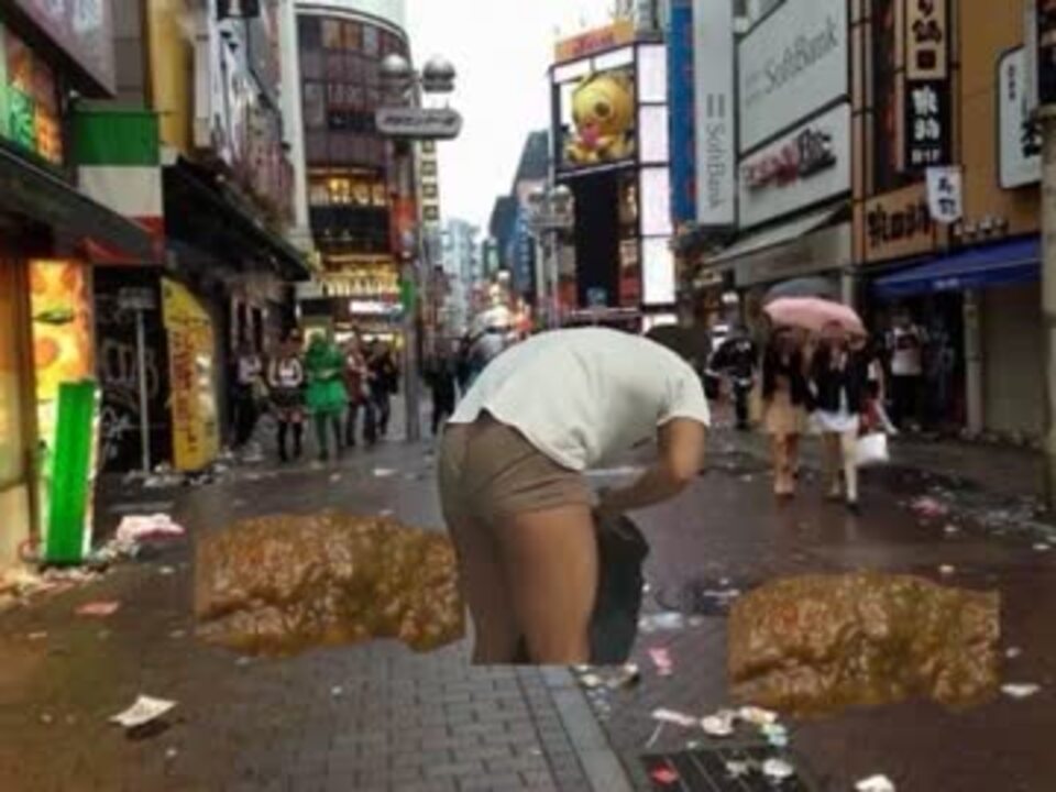 ハロウィンの翌日に汚れた街を掃除する先輩