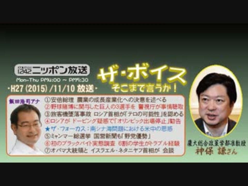 神保さんのご登場も早4回目となりましたが、今回はネタのチョイスに不満を感じました。てか、スポーツネタ2本も要らんでしょw<br />大体、他の論客陣が良くも悪くもアクの強い個性派揃いの中にあって、神保さんは全く毒気が無いので、専門外の話題を振ると、本当に当たり障りの無い普通の感想で終わってしまいますからねぇ。<br />「たまには、こういう論調もイイじゃない」というご意見も分かりますが、やはり番組名に則した濃いぃお話を伺いたいので、神保さんの時には専門分野に特化したネタでお願いしたいところですね。<br /><br />それはそうと、来週は長谷川さんお休みだそうで……、ただでさえ隔週番なのに、とほほですわ(^^;<br />※街ステ飛ばし→<a href="#" class="seekTime" data-seekTime="39:35" onclick="seekNicoPlayer('#39:35'); return false;">#39:35</a><br />□<a href="https://www.nicovideo.jp/mylist/50437895" target="_blank" rel="noopener">mylist/50437895</a>□<a href="https://www.nicovideo.jp/mylist/36340069" target="_blank" rel="noopener">mylist/36340069</a>□<a href="https://www.nicovideo.jp/mylist/41644857" target="_blank" rel="noopener">mylist/41644857</a>