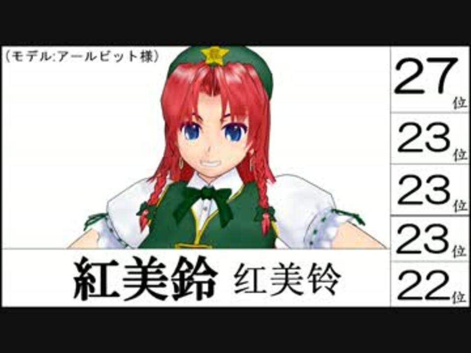 どうもです。<br />THBWiki[<a href="http://thwiki.cc" target="_blank" rel="noopener nofollow">http://thwiki.cc</a>]という中文(簡体字)のサイトで先日結果が公表された第四回人気投票<br />での各キャラの順位を、第三回、第二回ならびに日本の「第11回」、「第10回」での結果と合わせて<br />まとめた動画です。なお、都合により対象は第四回で上位81名の組み合わせのみとなります。<br /><br />ソース元→<a href="http://vote.thwiki.cc/" target="_blank" rel="noopener nofollow">http://vote.thwiki.cc/</a><br /><br />追記:KngOzk様、阪田様、ご広告誠にありがとうございます!<br /><br /><br />作ったもの→<a href="https://www.nicovideo.jp/mylist/31062950" target="_blank" rel="noopener">mylist/31062950</a><br />twitter.com/KSG_info