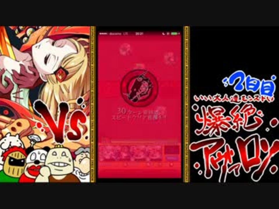 いい大人達が「モンスターストライク」の降臨クエスト<br />「渇望の果ての理想郷(爆絶)」クリアを目指して再び本気で遊んでみました。<br />本人達は至って本気でプレイしておりますが、腕前の方はお察し下さい。<br /><br />お詫び:投稿予定のモンスト動画の順番を飛ばして、最新のタイチョーのBOX情報や、現状の超絶攻略情報等が出てしまったため、修正箇所が多々ございます。ご了承ください。<br /><br />タイチョーのモンスト知識は大したこと無いのでスルーしてください。<br /><br />登場人物:イラスト参照!<br /><br />(ご注意!)タイチョーが大絶叫している箇所が多々あります。音量にご注意ください。<br /><br />前(1日目完結)→<a href="https://www.nicovideo.jp/watch/sm27458092" class="watch">sm27458092</a> 次→<a href="https://www.nicovideo.jp/watch/sm27601844" class="watch">sm27601844</a> これまでの実況→<a href="https://www.nicovideo.jp/mylist/17828031" target="_blank" rel="noopener">mylist/17828031</a> ラジオ→<a href="https://www.nicovideo.jp/mylist/28752088" target="_blank" rel="noopener">mylist/28752088</a>