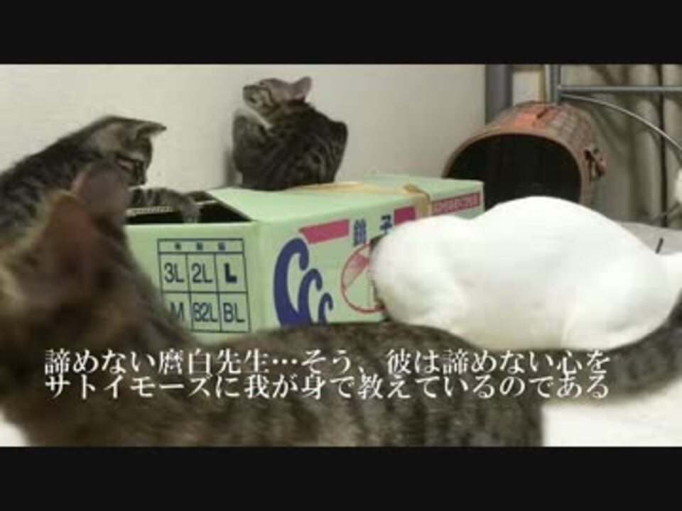 里親さまの元への旅立ちが迫る子猫兄弟のサトイモーズ。先住の麿白は彼らに猫としての振舞いを伝えようとしていました。<br />ブログ <a href="http://blog.livedoor.jp/nekokamasu/" target="_blank" rel="noopener nofollow">http://blog.livedoor.jp/nekokamasu/</a><br />【2014年当アカウントベスト動画】<a href="https://www.nicovideo.jp/mylist/47649306" target="_blank" rel="noopener">mylist/47649306</a><br />【宇宙猫兄弟】<a href="https://www.nicovideo.jp/mylist/50427722" target="_blank" rel="noopener">mylist/50427722</a><br />【野良猫観察(2015年)】<a href="https://www.nicovideo.jp/mylist/47649301" target="_blank" rel="noopener">mylist/47649301</a><br />【保護猫の観察】<a href="https://www.nicovideo.jp/mylist/45329168" target="_blank" rel="noopener">mylist/45329168</a><br />【猫の子育て観察】<a href="https://www.nicovideo.jp/mylist/45828555" target="_blank" rel="noopener">mylist/45828555</a><br />【人懐こい野良猫】<a href="https://www.nicovideo.jp/mylist/41859707" target="_blank" rel="noopener">mylist/41859707</a><br />【公園猫戦争】<a href="https://www.nicovideo.jp/mylist/44561791" target="_blank" rel="noopener">mylist/44561791</a><br />【猫のω】<a href="https://www.nicovideo.jp/mylist/44575723" target="_blank" rel="noopener">mylist/44575723</a><br />【キジトラ地獄】<a href="https://www.nicovideo.jp/mylist/44823472" target="_blank" rel="noopener">mylist/44823472</a><br />【野良猫観察(2014年)】<a href="https://www.nicovideo.jp/mylist/44575764" target="_blank" rel="noopener">mylist/44575764</a><br />【野良猫観察(2013年)】<a href="https://www.nicovideo.jp/mylist/37025475" target="_blank" rel="noopener">mylist/37025475</a>