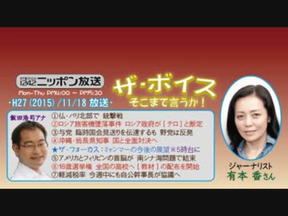 先月の特別企画では、石平さんとご一緒に熱弁を振るわれた有本さんですが、今回はお一人ながらも、その時に負けないほどに熱気ムンムン(死語)で、様々な問題にズバッと斬り込んでくださいました!(^^<br /><br />今回のキーワードは"国境"ですね。人類の歴史を鑑みれば、なぜ国家というモノが常に存在していたのか、いかに近年の「人類皆兄弟」や「地球市民」などという度が過ぎた多文化共生社会が幻想であるのかが、この放送を聴いた多くの方々に理解されるといいなと思います。<br />そう、和式リベラルのプロパガンダなんかに負けませんよ!w<br />★動画内のテロ地図の現物はこちら<br /><a href="https://telegraphtravel.cartodb.com/viz/b3716a1a-1f00-11e5-ad49-0e43f3deba5a/embed_map" target="_blank" rel="noopener nofollow">https://telegraphtravel.cartodb.com/viz/b3716a1a-1f00-11e5-ad49-0e43f3deba5a/embed_map</a><br />※街ステ飛ばし→<a href="#" class="seekTime" data-seekTime="37:40" onclick="seekNicoPlayer('#37:40'); return false;">#37:40</a><br />□<a href="https://www.nicovideo.jp/mylist/50437895" target="_blank" rel="noopener">mylist/50437895</a>□<a href="https://www.nicovideo.jp/mylist/36340069" target="_blank" rel="noopener">mylist/36340069</a>□<a href="https://www.nicovideo.jp/mylist/41644857" target="_blank" rel="noopener">mylist/41644857</a>