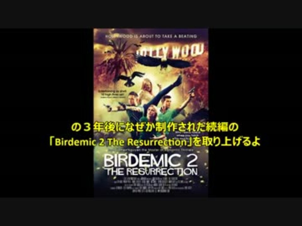 ※ネタバレ 前編には鳥が出てきません。登場人物のウダウダはどうでもいい。チープなCG鳥の襲撃にしか興味はない!という方は、後編をご覧ください。(原題:Birdemic 2 The Resurrection/2013年/アメリカ)どうしてこんな悲劇が起きたかというと、海外のランキング動画でバーデミックの存在を知る→いきなり本編を見るのは恐いからJonTronのレビューを見る→やっぱり気になって前作を見る→当然続編が気になって見てしまったという次第です。後編><a href="https://www.nicovideo.jp/watch/sm27680194" class="watch">sm27680194</a> JonTronによる前作レビューの翻訳><a href="https://www.nicovideo.jp/watch/sm27579526" class="watch">sm27579526</a> バーデミック関連動画マイリス><a href="https://www.nicovideo.jp/mylist/53881879" target="_blank" rel="noopener">mylist/53881879</a>