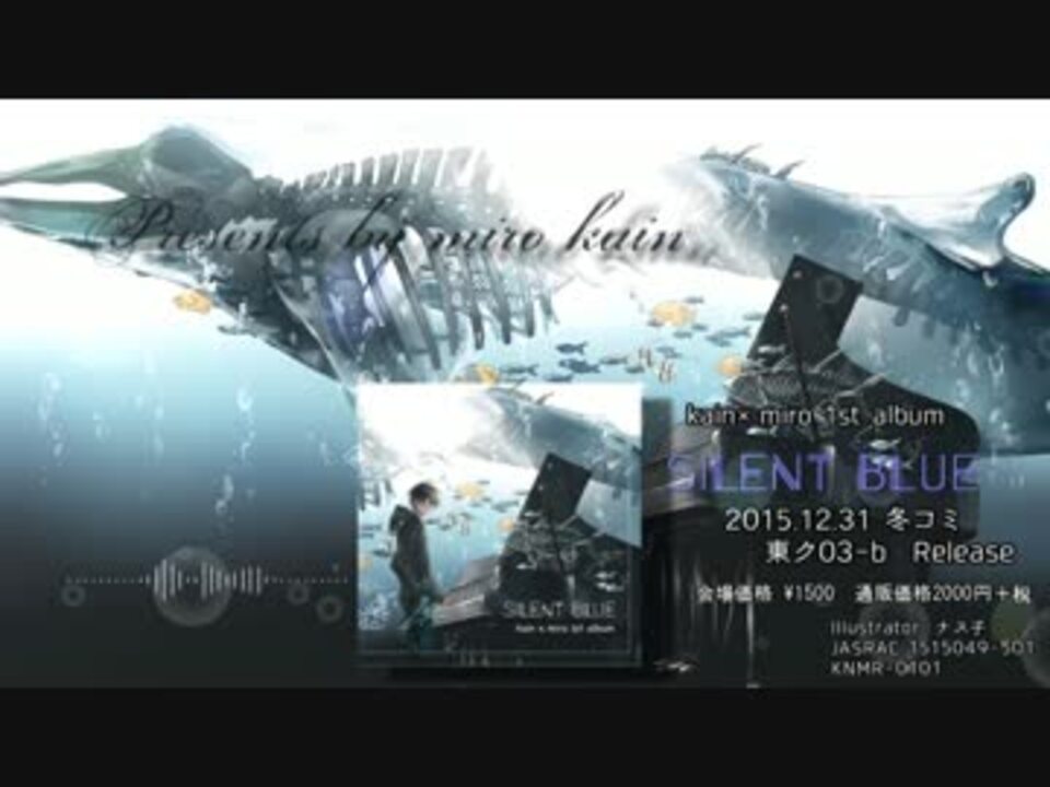 2015年12月31日(木)3日目に開催されるコミックマーケット89にて同人ミニアルバム『silent blue』を頒布させて頂きます。<br /><br />intro&ボーカロイドカバー2曲&j-popカバー2曲&miro書き下ろし&kain書き下ろし 合計7曲を収録!! <br /><br />場所 冬コミ3日目東ク03b<br />会場価格 1500円<br />通販委託 2000円+税<br />通販URL <a href="http://www.lagoa.jp/html/page66.html" target="_blank" rel="noopener nofollow">http://www.lagoa.jp/html/page66.html</a><br /><br />Movie: kain<br />イラスト: ナス子<br /><br />kain: <a href="https://www.nicovideo.jp/mylist/25971027" target="_blank" rel="noopener">mylist/25971027</a> @kain2525 <a href="https://www.nicovideo.jp/user/8733862" target="_blank" rel="noopener">user/8733862</a><br />miro: <a href="https://www.nicovideo.jp/mylist/38868026" target="_blank" rel="noopener">mylist/38868026</a> @mironuko <a href="https://www.nicovideo.jp/user/16822505" target="_blank" rel="noopener">user/16822505</a><br />