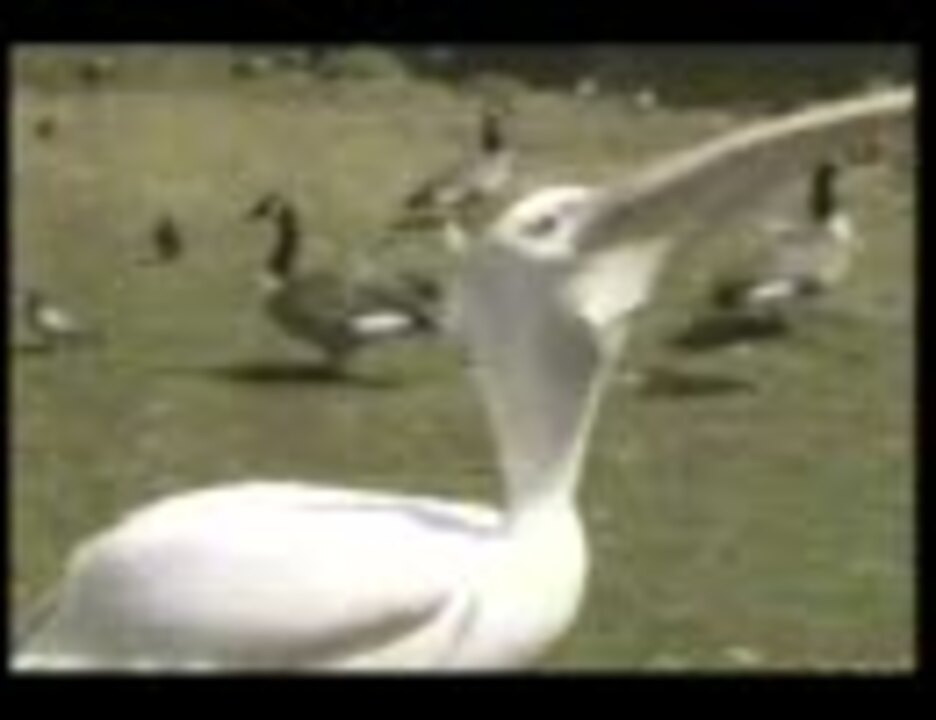 ハトを食べるペリカン