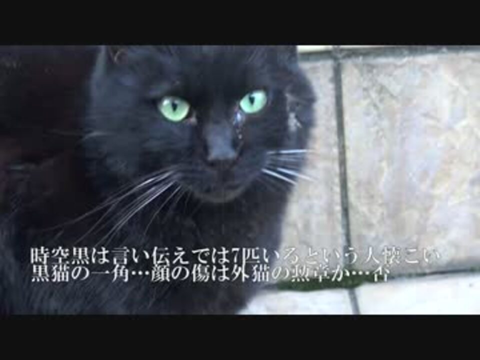人懐こい黒猫の一匹・時空黒が負傷していましたがやっぱりのんきでした。<br />猫時空相関図 <a href="https://seiga.nicovideo.jp/seiga/im4743756" target="_blank" rel="noopener">im4743756</a><br />ブログ <a href="http://blog.livedoor.jp/nekokamasu/" target="_blank" rel="noopener nofollow">http://blog.livedoor.jp/nekokamasu/</a><br />【2014年当アカウントベスト動画】<a href="https://www.nicovideo.jp/mylist/47649306" target="_blank" rel="noopener">mylist/47649306</a><br />【宇宙猫兄弟】<a href="https://www.nicovideo.jp/mylist/50427722" target="_blank" rel="noopener">mylist/50427722</a><br />【野良猫観察(2016年)】<a href="https://www.nicovideo.jp/mylist/54340999" target="_blank" rel="noopener">mylist/54340999</a><br />【野良猫観察(2015年)】<a href="https://www.nicovideo.jp/mylist/47649301" target="_blank" rel="noopener">mylist/47649301</a><br />【保護猫の観察】<a href="https://www.nicovideo.jp/mylist/45329168" target="_blank" rel="noopener">mylist/45329168</a><br />【猫の子育て観察】<a href="https://www.nicovideo.jp/mylist/45828555" target="_blank" rel="noopener">mylist/45828555</a><br />【人懐こい野良猫】<a href="https://www.nicovideo.jp/mylist/41859707" target="_blank" rel="noopener">mylist/41859707</a><br />【公園猫戦争】<a href="https://www.nicovideo.jp/mylist/44561791" target="_blank" rel="noopener">mylist/44561791</a><br />【猫のω】<a href="https://www.nicovideo.jp/mylist/44575723" target="_blank" rel="noopener">mylist/44575723</a><br />【キジトラ地獄】<a href="https://www.nicovideo.jp/mylist/44823472" target="_blank" rel="noopener">mylist/44823472</a><br />【野良猫観察(2014年)】<a href="https://www.nicovideo.jp/mylist/44575764" target="_blank" rel="noopener">mylist/44575764</a><br />【野良猫観察(2013年)】<a href="https://www.nicovideo.jp/mylist/37025475" target="_blank" rel="noopener">mylist/37025475</a>