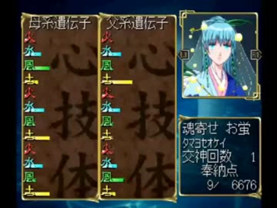選考試合回。<br />もっと安定して勝てるようになったら、序盤戦とかは適宜カットしていくつもりです。<br /><br />あとサムネを家族たちのステータス画面でと考えていましたが、どうやっても家族数が足りなくなる為、これまで交神してきた神様たちを無理やり突っ込もうと思います。<br />今回はあせもちゃんのお母さん、魂寄せのお蛍様。<br />改めてご尊顔を食い入る様に眺めたのですが、とっても美人さんで、「うーん。チューしたいなぁ」と思いました!<br />というかあせもちゃんはお母さんに似とるねぇ。<br /><br />前⇒<a href="https://www.nicovideo.jp/watch/sm27936632" class="watch">sm27936632</a> 次⇒<a href="https://www.nicovideo.jp/watch/sm27984742" class="watch">sm27984742</a><br /><br />マイリスト⇒<a href="https://www.nicovideo.jp/mylist/45061999" target="_blank" rel="noopener">mylist/45061999</a><br />