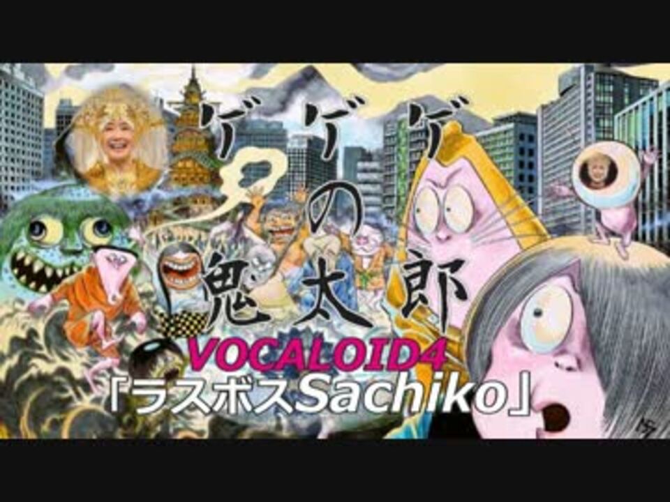 「ラスボス幸子シリーズ第7弾」ゲゲゲの鬼太郎をさっちゃんに歌ってもらいました。<br />オケと動画は相変わらずやっつけで作ってます・・・<br /><br />ラスボス幸子動画:<a href="https://www.nicovideo.jp/mylist/54208556" target="_blank" rel="noopener">mylist/54208556</a><br /><font color="red">NEW:チョコレイト・ディスコ【ちょこれいと・幸子】<br />NEW:雪の華~小林幸子バージョン~<br />NEW:千本桜~小林幸子バージョン~祝紅白【本気の調教】</font><br />・魂のルフラン【ラスボス幸子熱唱】<br />・【本気の調教】~天城越え~【越えちゃったラスボス幸子】<br />・星間飛行~【ラスボス幸子最終形態】<br />・残酷な天使のテーゼ~【ラスボス幸子襲来】<br />・秋桜~コスモス~【ラスボス幸子リアルボイス】<br /><br />GOボカロ関連マイリスト <a href="https://www.nicovideo.jp/mylist/37248668" target="_blank" rel="noopener">mylist/37248668</a><br />指ヨシキ関連マイリスト <a href="https://www.nicovideo.jp/mylist/37248753" target="_blank" rel="noopener">mylist/37248753</a><br />