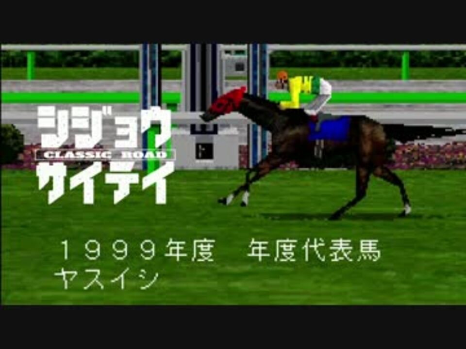 思い入れのあるゲームなんで大事にプレイしました。<br />最後まで見てもらってありがとうございます。<br />またどこかで動画を見かけたらよろしくしてやってください ノシ<br /><br /><b><font color="#bb641d">〓 要約 〓</font></b><br />●PS1版「クラシックロード」(競馬シミュレーションゲーム)の実況プレイ<br />●市場最低価格で日本史上最強馬を育成<br />◯縛り内容の詳細: <a href="https://www.nicovideo.jp/watch/sm27796521" class="watch">sm27796521</a><br /><br /><b><font color="#0079c2">〓 関連 〓</font></b><br />【前回 <a href="https://www.nicovideo.jp/watch/sm28027095" class="watch">sm28027095</a>】∈【目録 <a href="https://www.nicovideo.jp/mylist/54155358" target="_blank" rel="noopener">mylist/54155358</a>】<br /><br /><font size="2" color="gray">Twitter: @shu33333 コミュニティ: co2091524 投稿動画: <a href="https://www.nicovideo.jp/mylist/37505632" target="_blank" rel="noopener">mylist/37505632</a><br /></font>