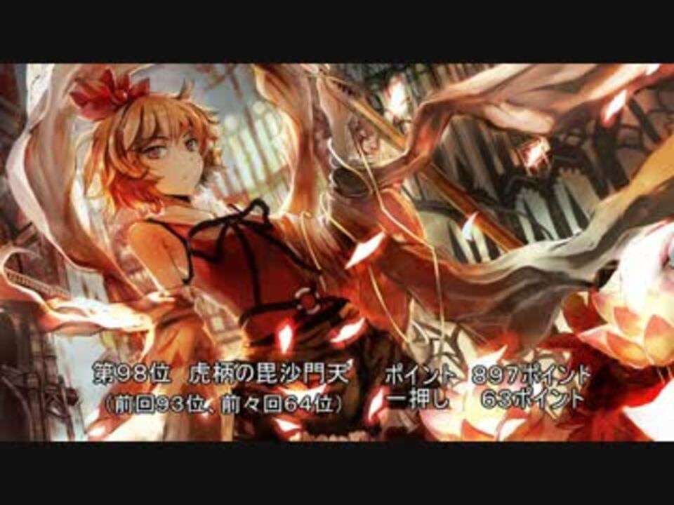 エンコに4~5時間かかるPCでやれるところまでやります()<br />持ってくれよ、俺のPC・・・!<br /><br />ということで、第12回人気投票音楽部門の100位からマラソンをはじめます!<br />+αでは100位以下の曲も何曲か紹介しています<br />他の曲も良曲なのでいろいろ知ってもらおうということで・・・<br /><br />速報版【10位~1位】→<a href="https://www.nicovideo.jp/watch/sm28055373" class="watch">sm28055373</a><br />その2→<a href="https://www.nicovideo.jp/watch/sm28069663" class="watch">sm28069663</a> その3→<a href="https://www.nicovideo.jp/watch/sm28079712" class="watch">sm28079712</a> その4→<a href="https://www.nicovideo.jp/watch/sm28087191" class="watch">sm28087191</a><br />その5→<a href="https://www.nicovideo.jp/watch/sm28096021" class="watch">sm28096021</a> その6→<a href="https://www.nicovideo.jp/watch/sm28126360" class="watch">sm28126360</a> その7→<a href="https://www.nicovideo.jp/watch/sm28137375" class="watch">sm28137375</a><br />その8→<a href="https://www.nicovideo.jp/watch/sm28161773" class="watch">sm28161773</a><br />第12回人気投票→<a href="https://www.nicovideo.jp/mylist/54582761" target="_blank" rel="noopener">mylist/54582761</a><br /><b>デー・・・デッデン♪デデッデデン♪ この前ニコニコ動画を見ていたらですね・・・</b>