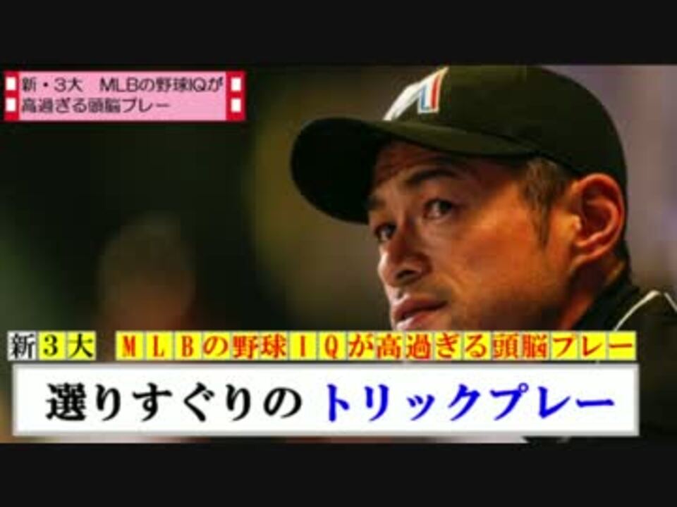 <font size="5"><b>前回の新・3大シリーズ第1弾⇒ <a href="https://www.nicovideo.jp/watch/sm27972231" class="watch">sm27972231</a><br />新・3大シリーズ第2弾⇒ <a href="https://www.nicovideo.jp/watch/sm28012254" class="watch">sm28012254</a><br /><br />次の新・3大⇒ <a href="https://www.nicovideo.jp/watch/sm28257763" class="watch">sm28257763</a><br /><br />2013年にうpした頭脳&トリックプレー集⇒ <a href="https://www.nicovideo.jp/watch/sm22964158" class="watch">sm22964158</a></font><b><br /><br /><br />ホントはヤンキース時代のイチローのフェンス処理やつとか、他にも入れたい<br />頭脳プレーは沢山ありましたが、尺の都合上カット<br /><br /><br />2015年日本人メジャーリーガー珍プレー&PV⇒ <a href="https://www.nicovideo.jp/watch/sm27925635" class="watch">sm27925635</a><br />2015年メジャーの珍プレー総集編⇒ <a href="https://www.nicovideo.jp/watch/sm27520038" class="watch">sm27520038</a><br /><br /><br />【2015年プレー集マイリス】⇒ <a href="https://www.nicovideo.jp/mylist/50370532" target="_blank" rel="noopener">mylist/50370532</a><br /><br />【歴代の好珍プレーまとめ系】⇒ <a href="https://www.nicovideo.jp/mylist/48095688" target="_blank" rel="noopener">mylist/48095688</a><br />【メジャー珍プレー集】⇒ <a href="https://www.nicovideo.jp/mylist/37532502" target="_blank" rel="noopener">mylist/37532502</a><br /><br />珍プレー未公開やコミュ限動画はこちら⇒ co2032183</b></b>