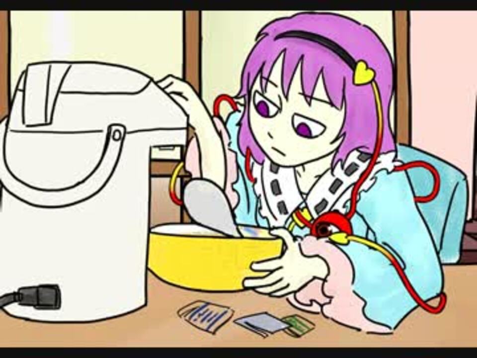 空腹よりも優先すべき事がある<br />愉快な地霊殿さとりさん カップ麵の巻き<br /><br />今年は時流にのってアピールしていこうと思い作りました<br />タイミングは逸していますが、テンポが良いものができたと思います<br /><br />偉大なる元ネタ様(<a href="https://www.nicovideo.jp/watch/sm27772047" class="watch">sm27772047</a>)<br />さとりさんの詳細(<a href="https://www.nicovideo.jp/watch/sm21255473" class="watch">sm21255473</a>)(<a href="https://www.nicovideo.jp/watch/sm21742123" class="watch">sm21742123</a>)(<a href="https://www.nicovideo.jp/watch/sm25979352" class="watch">sm25979352</a>)(<a href="https://seiga.nicovideo.jp/watch/mg143333" target="_blank" rel="noopener">mg143333</a>)<br />普段はこんなの作ってます<br />淡々と進むマイリスト(<a href="https://www.nicovideo.jp/mylist/19012394" target="_blank" rel="noopener">mylist/19012394</a>)<br />それ以外のマイリスト(<a href="https://www.nicovideo.jp/mylist/36155186" target="_blank" rel="noopener">mylist/36155186</a>)<br />漫画版(<a href="https://seiga.nicovideo.jp/comic/17452" target="_blank" rel="noopener">comic/17452</a>)<br /><br />淡々を作る作業に戻ります