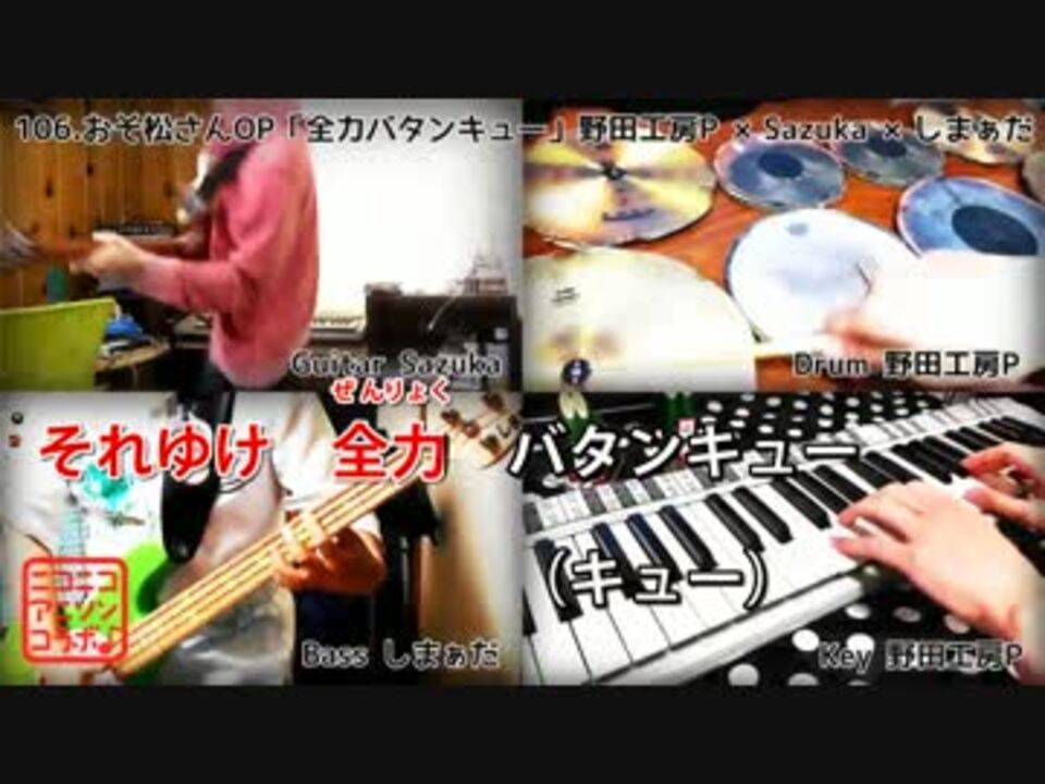 <font color="red" size="4"><b>★「歌ってみた用」【ガイドメロ無】音源配布中!→<a href="http://nodakoubou.net/" target="_blank" rel="noopener nofollow">http://nodakoubou.net/</a></b></font><br /><br /><b>◆原曲:</b>全力バタンキュー(A応P)<br /><b>◆企画/打ち込み:</b>野田工房P <a href="https://www.nicovideo.jp/mylist/15625161" target="_blank" rel="noopener">mylist/15625161</a>(@nodakoubou)<br /><b>◆ギター:</b>Sazuka <a href="https://www.nicovideo.jp/mylist/49246654" target="_blank" rel="noopener">mylist/49246654</a> (@GtSazuka)<br /><b>◆ベース:</b>しまぁだ <a href="https://www.nicovideo.jp/mylist/53228417" target="_blank" rel="noopener">mylist/53228417</a>(@yugeshimada)<br /><br /><b>↓★総合アニソンランキング【1位~235位】★</b><br />1位 マクロスF OP <a href="https://www.nicovideo.jp/watch/sm32906156" class="watch">sm32906156</a><br />2位 とある科学の超電磁砲OPメドレー <a href="https://www.nicovideo.jp/watch/sm32911568" class="watch">sm32911568</a><br />3位 エヴァンゲリオンOP <a href="https://www.nicovideo.jp/watch/sm31779492" class="watch">sm31779492</a><br />4位 ヒロアカOP <a href="https://www.nicovideo.jp/watch/sm31361044" class="watch">sm31361044</a><br />5位 化物語OP <a href="https://www.nicovideo.jp/watch/sm32869515" class="watch">sm32869515</a><br />6位 SAO OP <a href="https://www.nicovideo.jp/watch/sm30644744" class="watch">sm30644744</a><br />7位 まほ嫁OP <a href="https://www.nicovideo.jp/watch/sm32020720" class="watch">sm32020720</a><br />8位 マクロスΔ挿入歌 <a href="https://www.nicovideo.jp/watch/sm27930446" class="watch">sm27930446</a><br />9位 おそ松さんOP <a href="https://www.nicovideo.jp/watch/sm32828317" class="watch">sm32828317</a><br />10位 エロマンガ先生OP <a href="https://www.nicovideo.jp/watch/sm31112036" class="watch">sm31112036</a><br />11位 ビルドOP <a href="https://www.nicovideo.jp/watch/sm32016180" class="watch">sm32016180</a><br />12位 Fate OP <a href="https://www.nicovideo.jp/watch/sm31614154" class="watch">sm31614154</a><br />13位 打上花火 主題歌 <a href="https://www.nicovideo.jp/watch/sm31735754" class="watch">sm31735754</a><br />14位 進撃の巨人OP <a href="https://www.nicovideo.jp/watch/sm31261762" class="watch">sm31261762</a><br />15位 エロマンガ先生ED <a href="https://www.nicovideo.jp/watch/sm31279711" class="watch">sm31279711</a><br />16位 アホガールOP <a href="https://www.nicovideo.jp/watch/sm31655557" class="watch">sm31655557</a><br />17位 活劇 刀剣乱舞OP <a href="https://www.nicovideo.jp/watch/sm31688011" class="watch">sm31688011</a><br />18位 十二大戦OP <a href="https://www.nicovideo.jp/watch/sm32114043" class="watch">sm32114043</a><br />19位 徒然チルドレンOP <a href="https://www.nicovideo.jp/watch/sm31770050" class="watch">sm31770050</a><br />20位 ポプテピピック OP <a href="https://www.nicovideo.jp/watch/sm32830393" class="watch">sm32830393</a><br />…<br />↓続きはこちら<br /><a href="http://nodakoubou.net/anison_ranking/" target="_blank" rel="noopener nofollow">http://nodakoubou.net/anison_ranking/</a><br />