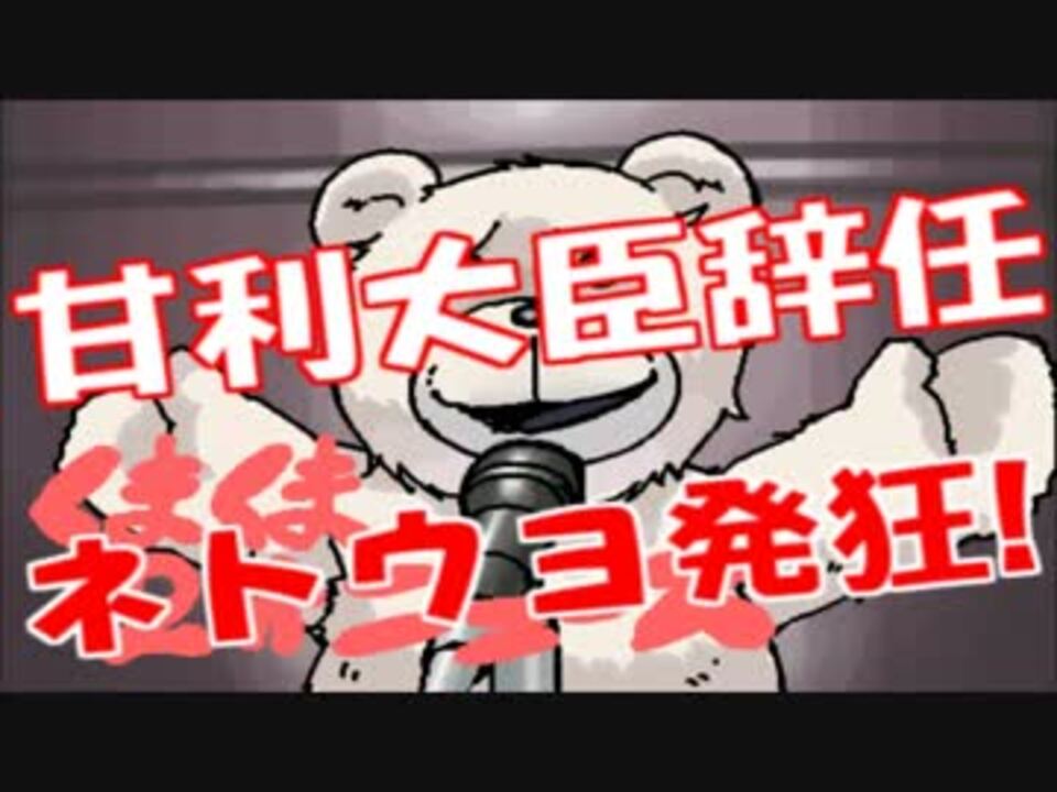 情報拡散のため、コメント ・マイリス登録・広告の支援をお願いしています<br /><br />甘利大臣辞任と陰謀論を唱える気持ち悪い人たち<br />画像修正無し完全版⇒<a href="https://youtu.be/4DxrXYPv42A" target="_blank" rel="noopener nofollow">https://youtu.be/4DxrXYPv42A</a><br /><br />YouTube⇒<a href="http://www.youtube.com/subscription_center?add_user=Katsuhyenapink" target="_blank" rel="noopener nofollow">http://www.youtube.com/subscription_center?add_user=Katsuhyenapink</a><br />うp主 ニコ生コミュ⇒co1314607<br />かったん(*≧∀≦)ノ☆・゚踊ってみたリスト⇒<a href="https://www.nicovideo.jp/mylist/50539902" target="_blank" rel="noopener">mylist/50539902</a><br />かったん(*≧∀≦)ノ☆・゚のショートムービー集⇒<a href="https://www.nicovideo.jp/mylist/53252832" target="_blank" rel="noopener">mylist/53252832</a><br />くまくまニュース(。・(エ)・。)ノマイリスト⇒<a href="https://www.nicovideo.jp/mylist/50760418" target="_blank" rel="noopener">mylist/50760418</a><br />ブログ⇒<a href="http://ameblo.jp/kattann2525/" target="_blank" rel="noopener nofollow">http://ameblo.jp/kattann2525/</a><br />ツイッター⇒<a href="https://twitter.com/KATSUNAMA" target="_blank" rel="noopener nofollow">https://twitter.com/KATSUNAMA</a>