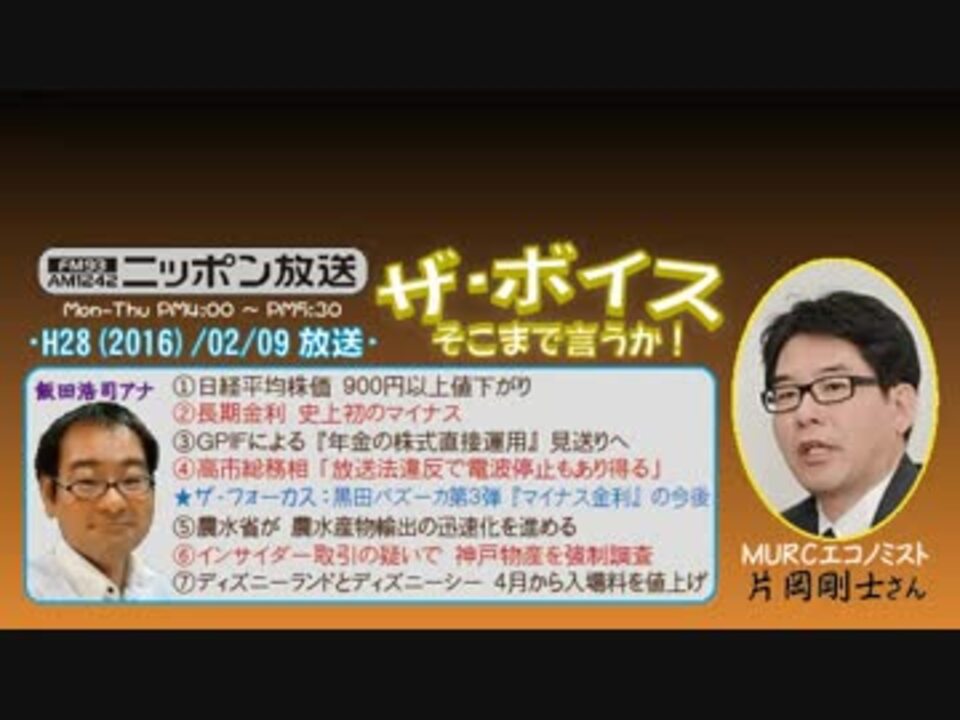 昨日の勝谷さん回がバラエティーに富んだネタのチョイスだったのとは対照的に、今日は、ほぼ経済ネタ一色で、ちゃんとゲストの方を尊重されている証である一方、その振れ幅の極端さがボイスらしいというか、何だか私的にツボって可笑しかったのでした(^^<br /><br />そう、可笑しいといえば、これまでのご出演から、片岡さんって意外とお茶目さんだというのは分かっていましたが、5時台で、まさかあんなネタを披露されるとは驚きました!<br />もしや、その前の『街ステ』の流れを汲んでのことなのでしょうか……、というわけで、いつもは街ステを飛ばしちゃうというそこの貴方! 片岡さん渾身の(?)ネタをより堪能するためにも、今回は聴かないと後悔しますよ!(?笑)<br />※街ステ飛ばし→<a href="#" class="seekTime" data-seekTime="38:46" onclick="seekNicoPlayer('#38:46'); return false;">#38:46</a><br />□<a href="https://www.nicovideo.jp/mylist/36340069" target="_blank" rel="noopener">mylist/36340069</a>□<a href="https://www.nicovideo.jp/mylist/41644857" target="_blank" rel="noopener">mylist/41644857</a>