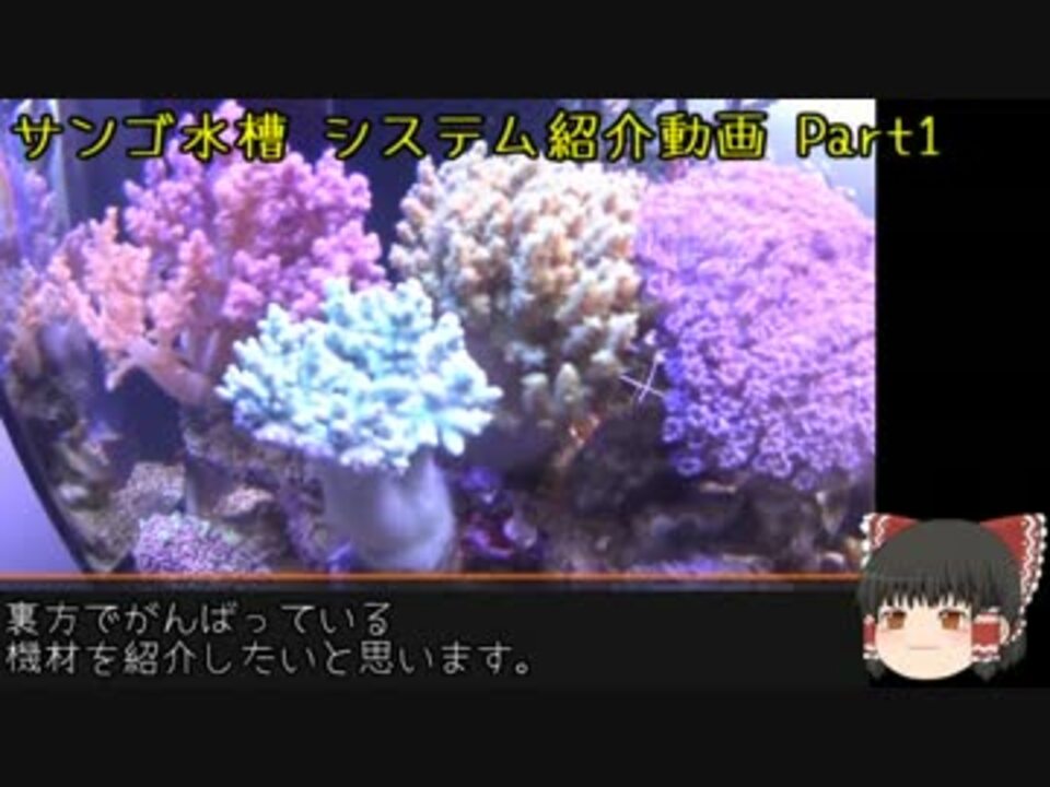 更新版ができました!<a href="https://www.nicovideo.jp/watch/sm28807299" class="watch">sm28807299</a><br /><br />ミドリイシ、コモンサンゴ、ソフトコーラルと海水魚を飼育している水槽システムをゆっくり解説します。<br />魚だけ、ソフトコーラルだけの水槽ならもっと簡易システムで良いので、海水水槽の中でも特殊例だと思って見てください。<br />Part1ではオーバーフロー水槽の仕組みをメインに説明します。ZEOvitシステムの仕組みやAPEXの仕組みは今後のパートにご期待ください。<br />Part1 <a href="https://www.nicovideo.jp/watch/sm28807299" class="watch">sm28807299</a> ◀ [<a href="https://www.nicovideo.jp/mylist/3013554" target="_blank" rel="noopener">mylist/3013554</a>] ▶ Part2 <a href="https://www.nicovideo.jp/watch/sm28848308" class="watch">sm28848308</a><br /><br />いままでの魚とサンゴ動画:<a href="https://www.nicovideo.jp/watch/sm28016148" class="watch">sm28016148</a> <a href="https://www.nicovideo.jp/watch/sm25523450" class="watch">sm25523450</a><br />Blog ZEO水槽日記:<a href="http://mjneko.blog.fc2.com/" target="_blank" rel="noopener nofollow">http://mjneko.blog.fc2.com/</a><br />Twitter:@mjneko_zeovit
