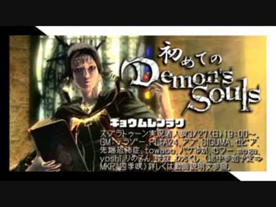 おっさん殺すタイミング見誤ったかも知れん。<br /><b>追記:再開時より、しがみつくと盗人をなるべく着けずに死と戦いを甘受するスタイルでやってます<br />しがみつく装備しないのには賛否両論あると思いますが・・・。色んな指輪使いたいのです。<br /><font color=red>スプラトゥーン実況者人狼詳細⇒<u><a href="http://terakko.wix.com/skype-jinrou" target="_blank" rel="noopener nofollow">http://terakko.wix.com/skype-jinrou</a></u><br /></font></b><br /><b><font color=red>★最初:<a href="https://www.nicovideo.jp/watch/sm28069054" class="watch">sm28069054</a></b></font>≪★前:<a href="https://www.nicovideo.jp/watch/sm28280449" class="watch">sm28280449</a>┃Demon's Souls <a href="https://www.nicovideo.jp/mylist/54621204" target="_blank" rel="noopener">mylist/54621204</a>┃★次:<a href="https://www.nicovideo.jp/watch/sm28287272" class="watch">sm28287272</a>≫<br />■その他の実況:<a href="https://www.nicovideo.jp/mylist/16239260" target="_blank" rel="noopener">mylist/16239260</a>■twitter⇒<a href="http://twitter.com/terazo" target="_blank" rel="noopener nofollow">http://twitter.com/terazo</a>