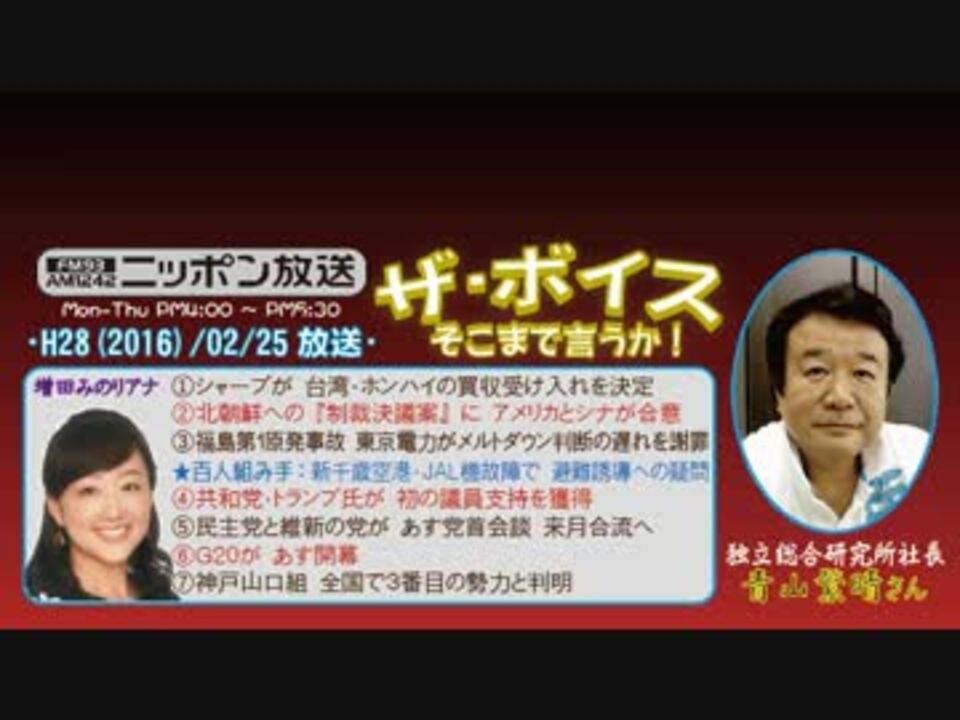 飯田アナがお休みのザ・ボイスも、いよいよ最終日~そのトリを飾る助っ人は、新保アナと共に『街ステ』でもお馴染みの、増田みのりアナです!(^^<br />増田アナは、ニッポン放送の女性陣では新保アナと増山アナの間、まさに中堅に位置するお方で、その仕事ぶりは安定感があってかつ実直そのもの。てか、毎回ちゃーんとw街ステもお聴きの方には何となく伝わっていたと思いますが、とにかく真面目なんですよね。今回も、青山さんが次々と繰り出すおちゃらけた振りを華麗にスルーしていたのは流石です(?笑<br /><br />そうそう、街ステといえば、今回"青山家の驚くべき秘密"が明らかに!? ――これは聴かなきゃ損ソン♪(^^ ……え、でも飛ばすって? そ、そんなぁw<br />※街ステ飛ばし→<a href="#" class="seekTime" data-seekTime="37:32" onclick="seekNicoPlayer('#37:32'); return false;">#37:32</a><br />□<a href="https://www.nicovideo.jp/mylist/50437895" target="_blank" rel="noopener">mylist/50437895</a>□<a href="https://www.nicovideo.jp/mylist/36340069" target="_blank" rel="noopener">mylist/36340069</a>□<a href="https://www.nicovideo.jp/mylist/41644857" target="_blank" rel="noopener">mylist/41644857</a>