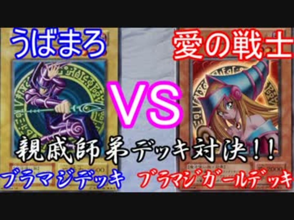 実況者であり、親戚でもあるうばまろ君と遊戯王でデュエルしました。<br />親戚というだけあり、デッキコンセプトも似ました。<br /><br />うばまろのブラックマシシャン(師匠)か、愛の戦士のブラックマジシャンガール(弟子)が勝つのか、伝説のファンデッキ同士の戦いが今始まる!!<br /><br />次→<a href="https://www.nicovideo.jp/watch/sm28384815" class="watch">sm28384815</a><br /><br /><font color="blue">◆うばまろ◆</font><br /><a href="https://www.nicovideo.jp/mylist/23468417" target="_blank" rel="noopener">mylist/23468417</a>┃co1082726┃@uvmr0621<br /><font color="red">◆愛の戦士◆</font><br /><a href="https://www.nicovideo.jp/mylist/34427287" target="_blank" rel="noopener">mylist/34427287</a>┃co2035980┃@ainosensi2<br /><br />【遊戯王マイリス】<a href="https://www.nicovideo.jp/mylist/54675966" target="_blank" rel="noopener">mylist/54675966</a><br />【サブ垢】<a href="https://www.nicovideo.jp/user/52667187" target="_blank" rel="noopener">user/52667187</a>(こちらにも動画投稿中)