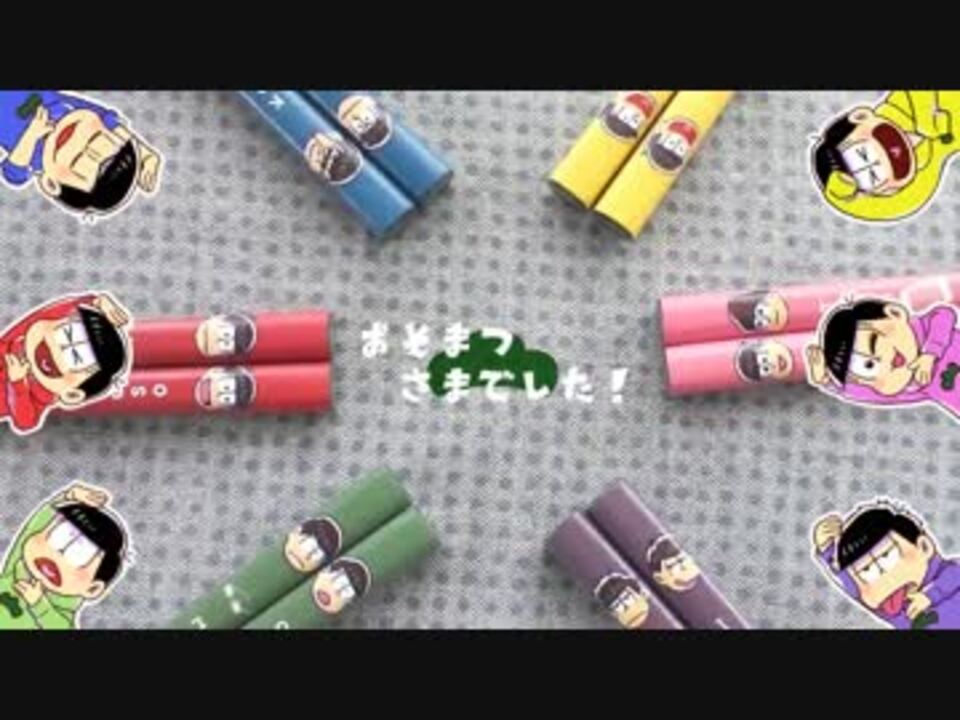 カラ松のスギちゃん感が半端ない。<br /><br />「手描きおそ松さん」&「作ってみた」動画2本め(<a href="https://www.nicovideo.jp/mylist/54601052" target="_blank" rel="noopener">mylist/54601052</a>)<br />長男・次男・三男でわいわい騒ぎながら<br />おそ松さんのお箸をつくりました。<br /><br />※やはりポスカは流れてしまうので駄目みたいです※<br /><br />→<font color="red">おそ松さん箸新作! <a href="https://www.nicovideo.jp/watch/sm29678687" class="watch">sm29678687</a></font><br />→【弟松編】<a href="https://www.nicovideo.jp/watch/sm28058829" class="watch">sm28058829</a><br />→【まどマギ箸】 <a href="https://www.nicovideo.jp/watch/sm29256200" class="watch">sm29256200</a><br /><br />◇今回使わせていただいた曲◇<br /><a href="https://www.nicovideo.jp/watch/sm27576108" class="watch">sm27576108</a>/<a href="https://www.nicovideo.jp/watch/sm28198279" class="watch">sm28198279</a>/<a href="https://www.nicovideo.jp/watch/sm27976972" class="watch">sm27976972</a><br /><br />◆追記◆ ご視聴&コメント沢山うれしいです!<br />そしてエナヤさま、櫻樹さま宣伝ありがとうございました!<br /><br />Youtube版→ <a href="https://www.youtube.com/watch?v=F6NoR8T2kmk" target="_blank" rel="noopener nofollow">https://www.youtube.com/watch?v=F6NoR8T2kmk</a>