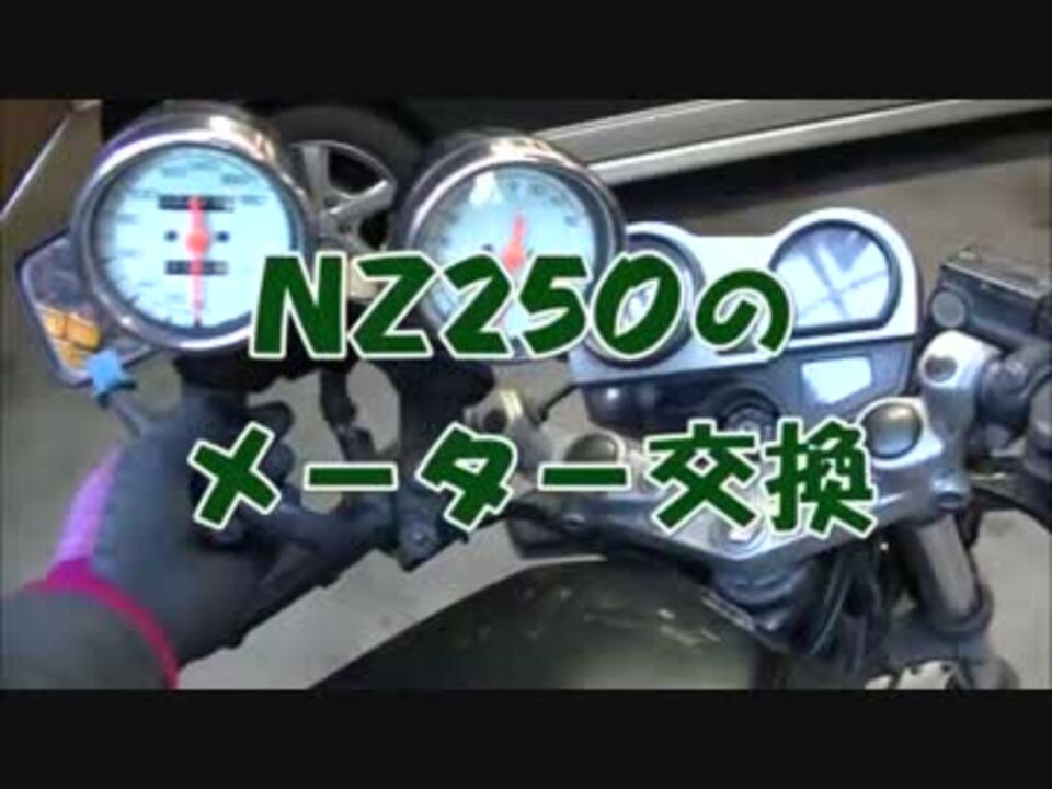 単発企画です。<br />NZ250のメーターをグース250のメーターに交換します。<br />緩いカスタムという感じです。<br />まーさんの動画リスト<br />YZ80(4V1)のレストア <a href="https://www.nicovideo.jp/mylist/53022189" target="_blank" rel="noopener">mylist/53022189</a><br />乗り出し5万円で車は買えるか <a href="https://www.nicovideo.jp/mylist/53282961" target="_blank" rel="noopener">mylist/53282961</a><br />ガレージ用品、工具など <a href="https://www.nicovideo.jp/mylist/52640434" target="_blank" rel="noopener">mylist/52640434</a><br />ベンツC240(W202)ユーザー車検 <a href="https://www.nicovideo.jp/mylist/52568499" target="_blank" rel="noopener">mylist/52568499</a><br /><br />youtube<br /> <a href="https://www.youtube.com/c/山田正昭" target="_blank" rel="noopener nofollow">https://www.youtube.com/c/山田正昭</a><br /><br />ブログ「素人バイクレストアで儲けたい」<br /><a href="http://y2bike.sblo.jp/" target="_blank" rel="noopener nofollow">http://y2bike.sblo.jp/</a><br /><br />ツイッター<a href="https://twitter.com/yamada911" target="_blank" rel="noopener nofollow">https://twitter.com/yamada911</a>