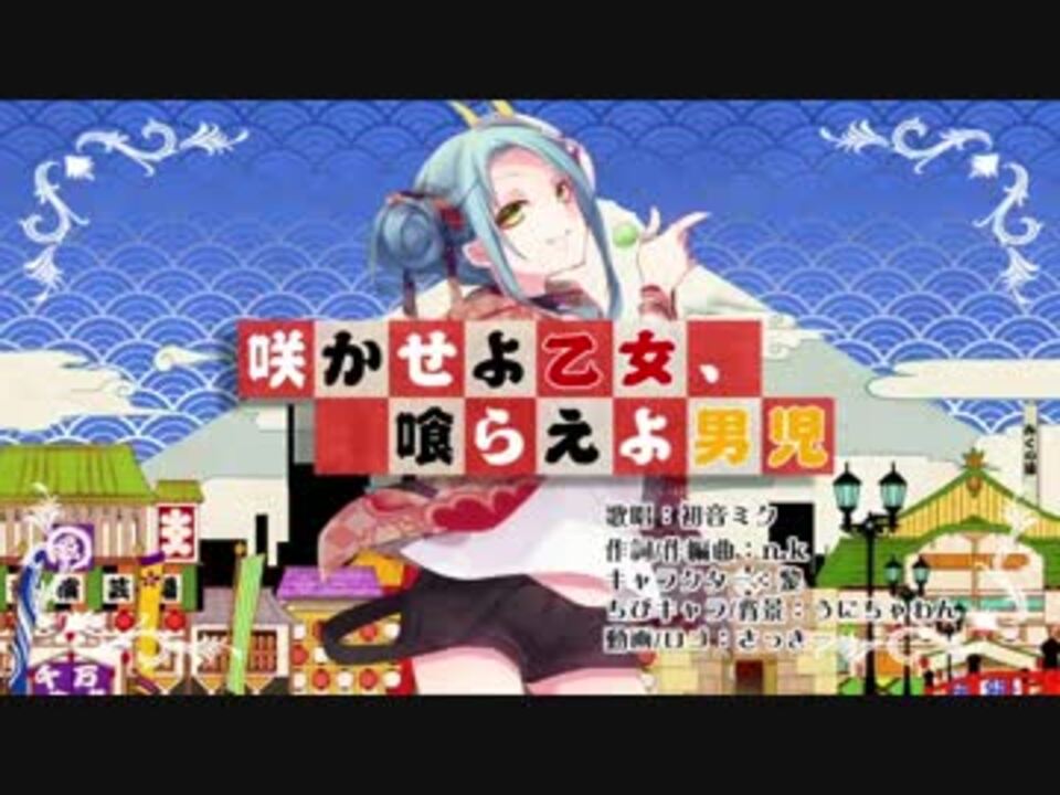 n.k(えぬけー)です。<br /><br />これもなにかの縁…<br />それでは皆々様、ご唱和下さい!<br />「やいやいや~!わっしょい~!Hi!(*'∀'*)」<br /><br />うらたぬき・あほの坂田・n.k歌唱Ver<br /><a href="https://www.nicovideo.jp/watch/sm28505453" class="watch">sm28505453</a><br /><br />歌唱:初音ミク<br /><br />作詞・作編曲:n.k<br />楽曲マイリス:<a href="https://www.nicovideo.jp/mylist/41600871" target="_blank" rel="noopener">mylist/41600871</a><br />歌唱マイリス:<a href="https://www.nicovideo.jp/mylist/53841343" target="_blank" rel="noopener">mylist/53841343</a><br />コミュ:co2577430<br />ツイッター:nantomo_komatta<br /><br />イラスト:黎(クロイ)(@kuroi0)<br />背景:うにちゃわん(<a href="https://www.nicovideo.jp/mylist/54834872" target="_blank" rel="noopener">mylist/54834872</a> @unichawan)<br />動画・エンコード:さっきー(<a href="https://www.nicovideo.jp/mylist/22900752" target="_blank" rel="noopener">mylist/22900752</a> @B_B_sakky)<br /><br />前作→リストラクト <a href="https://www.nicovideo.jp/watch/sm28313814" class="watch">sm28313814</a><br />カラオケ→<a href="https://goo.gl/cPUkR5" target="_blank" rel="noopener nofollow">https://goo.gl/cPUkR5</a>
