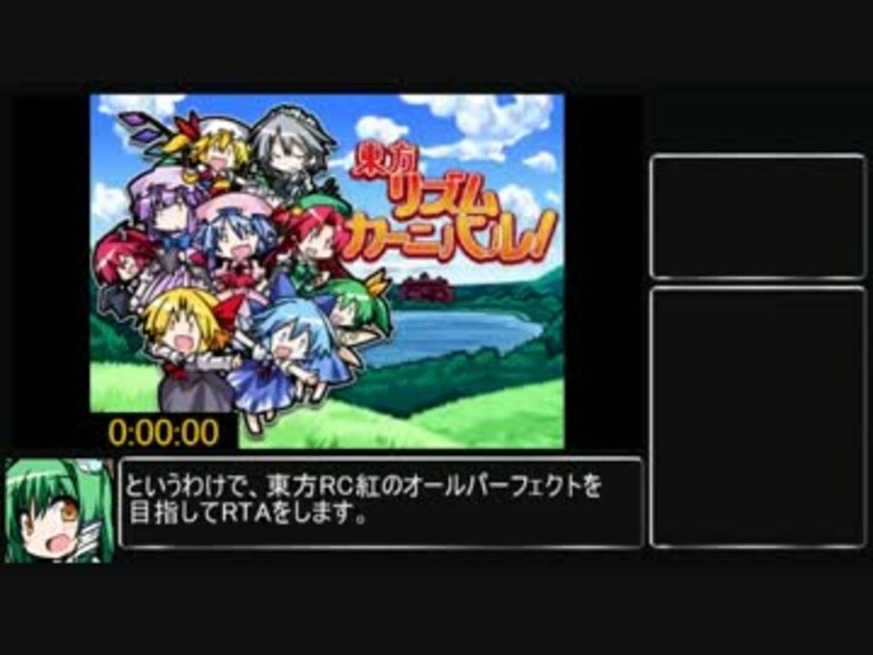 <b><font size="5">更に記録更新しました→『1:10:06』→『0:57:33』</font></b><br /><br />初めてのチュウです。<br /><br /><br />全てのゲームをノーミスクリアするまでRTAするのが目的です。<br />計測はSTART押してからリミックスのクリアイラストが表示されるまで。<br /><br />メロンブックスDLの配信ページ<br /><a href="http://www.melonbooks.com/index.php?main_page=product_info&products_id=IT0000167706" target="_blank" rel="noopener nofollow">http://www.melonbooks.com/index.php?main_page=product_info&products_id=IT0000167706</a><br /><br />Part1のプレイしたゲームは「紅魔戦隊ソウナノカー」「ぱっくんルーミア」「ほっぷ!すてっぷ!大ジャンプ!」「フロストK」<br /><br /><br />Part2→<a href="https://www.nicovideo.jp/watch/sm28519882" class="watch">sm28519882</a><br /><br /><a href="https://www.nicovideo.jp/mylist/55106321" target="_blank" rel="noopener">mylist/55106321</a><br /><br />追記:書き忘れてたけどめっちゃガバってます。お兄さん許して<br /><br />すずのね兄貴、ラテ兄貴宣伝ありがとナス!